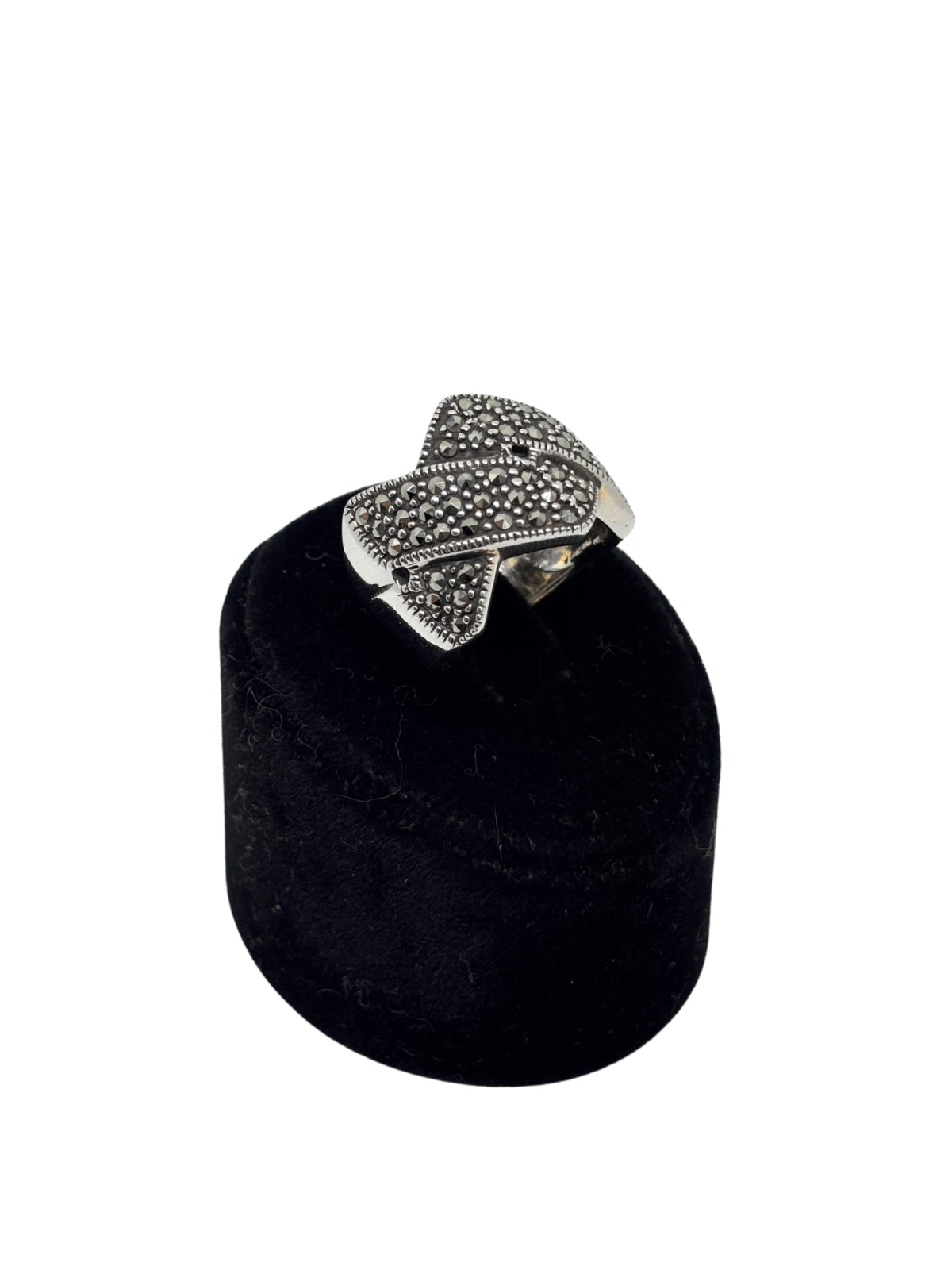 Markazit Taşlı Zikzak Desen Gümüş Kadın Yüzük