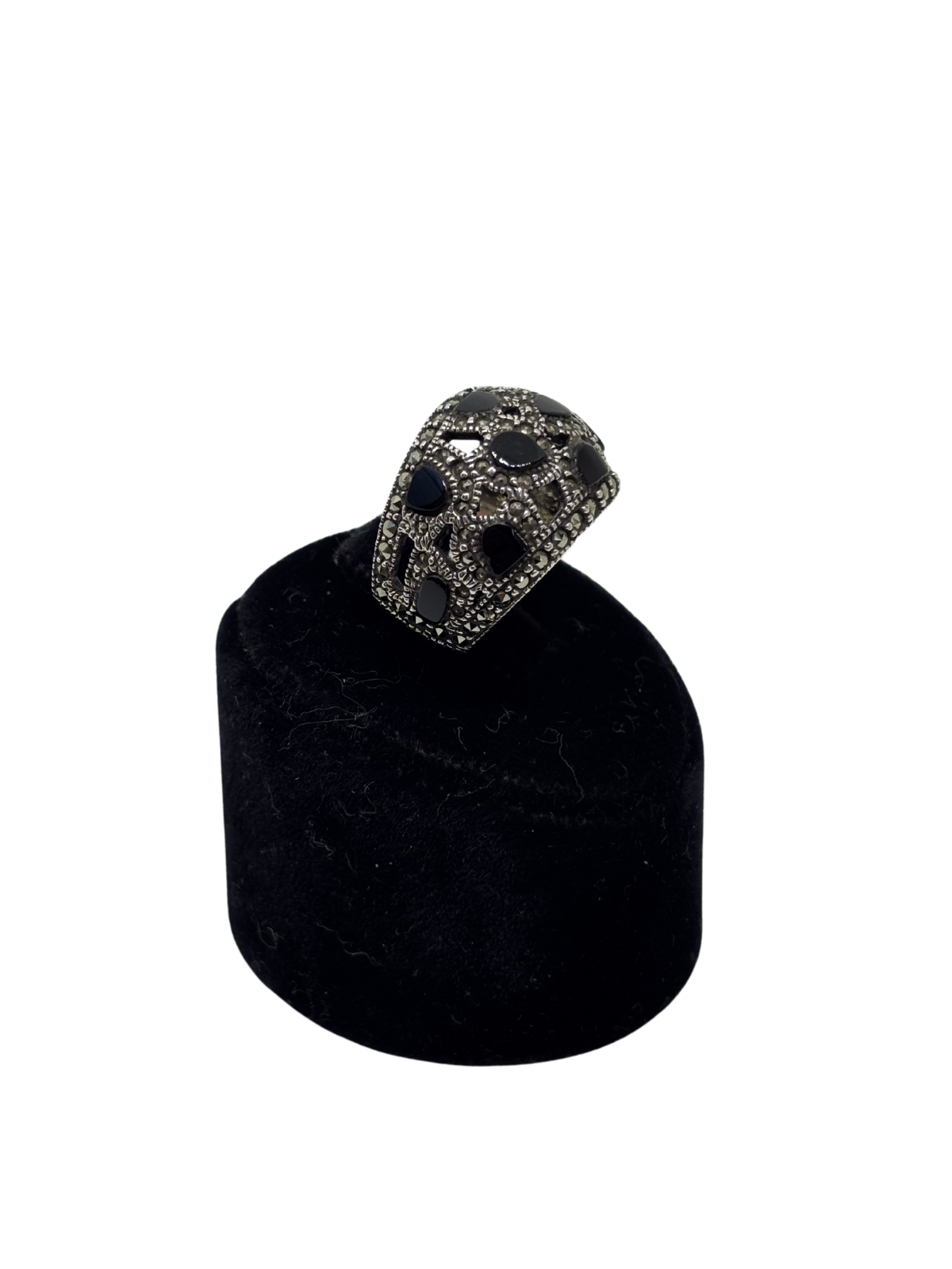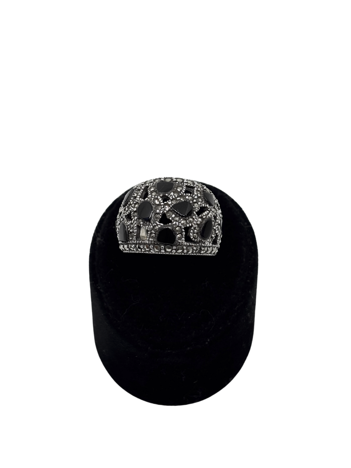 Markazit ve Oniks Taşlı Kubbe Gümüş Kadın Yüzük