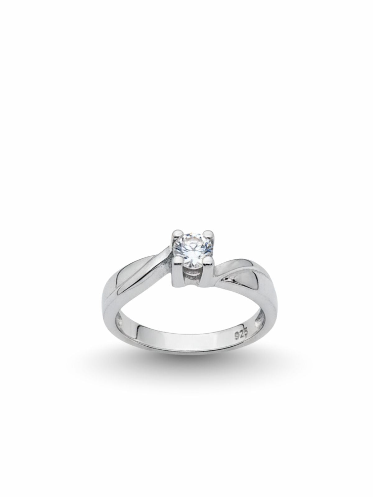 Wave Zirkon Taşlı Tektaş Gümüş Kadın Yüzük