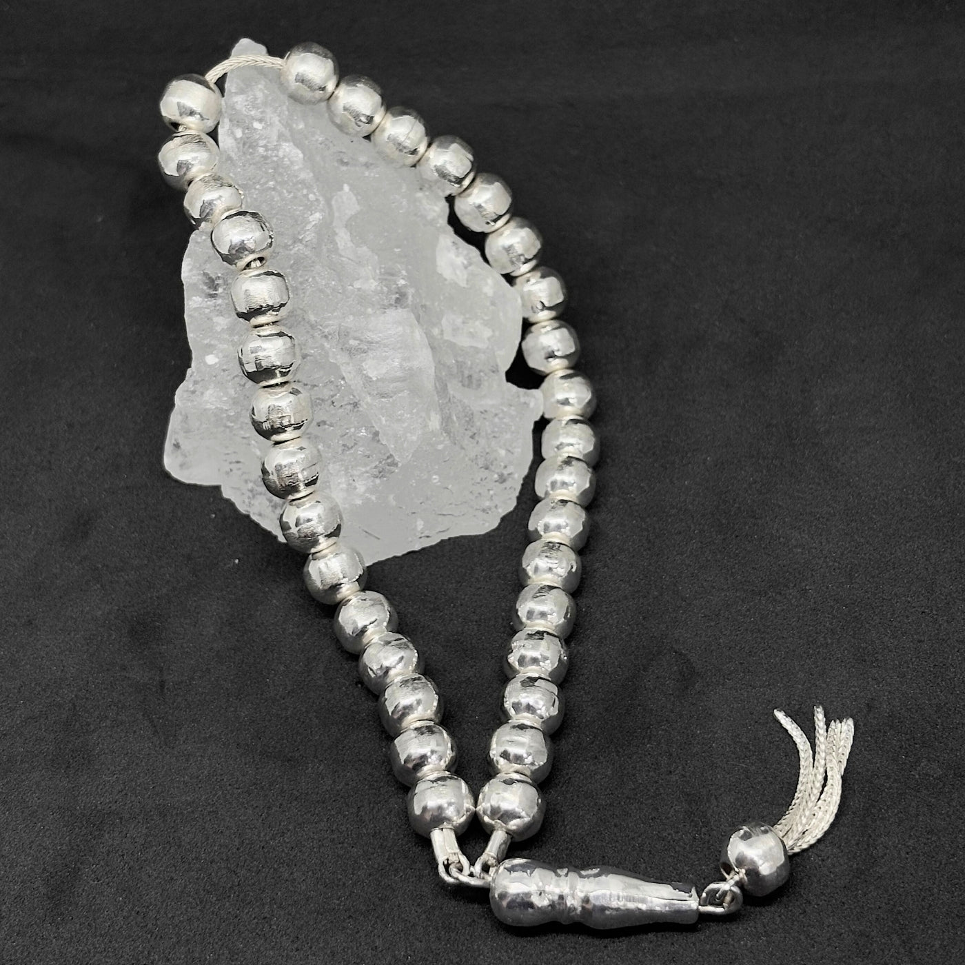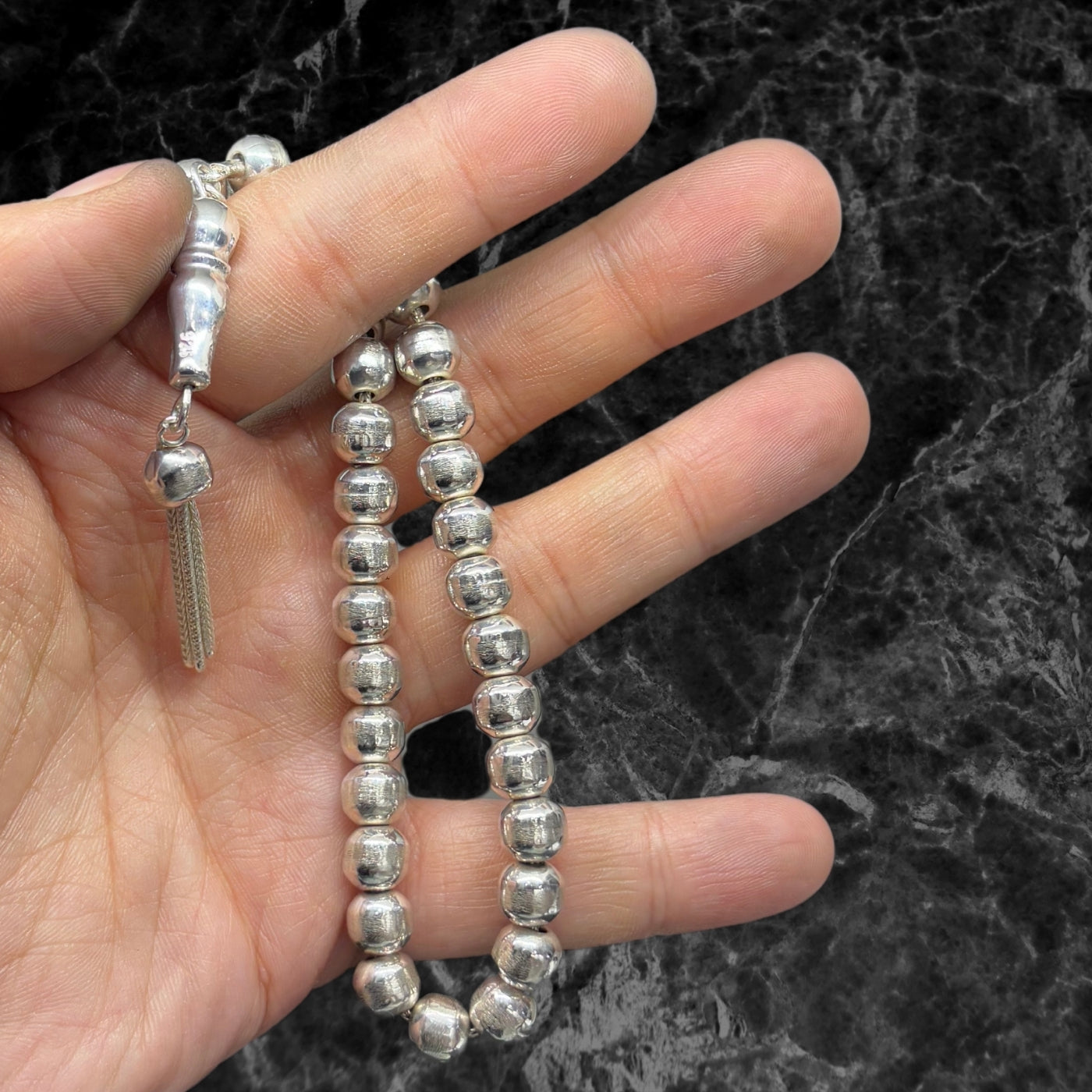 Basık Yuvarlak Taneli Gümüş Tesbih