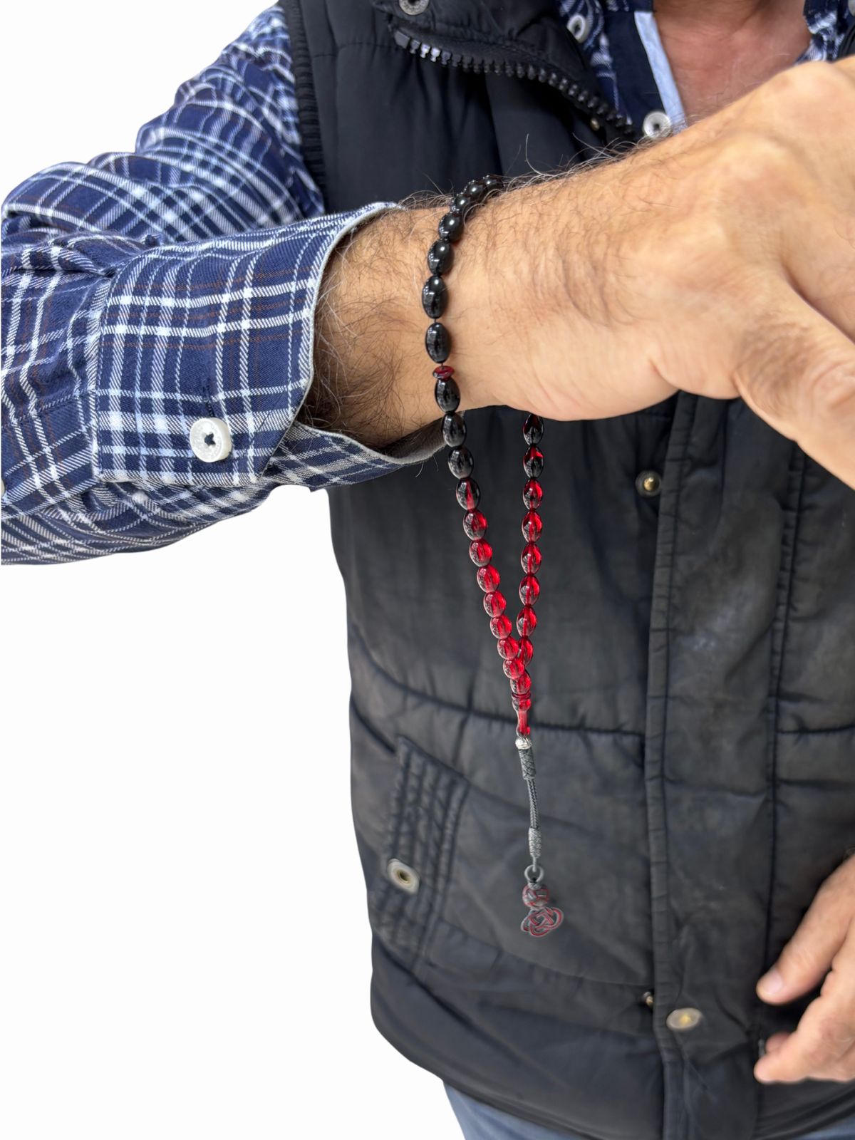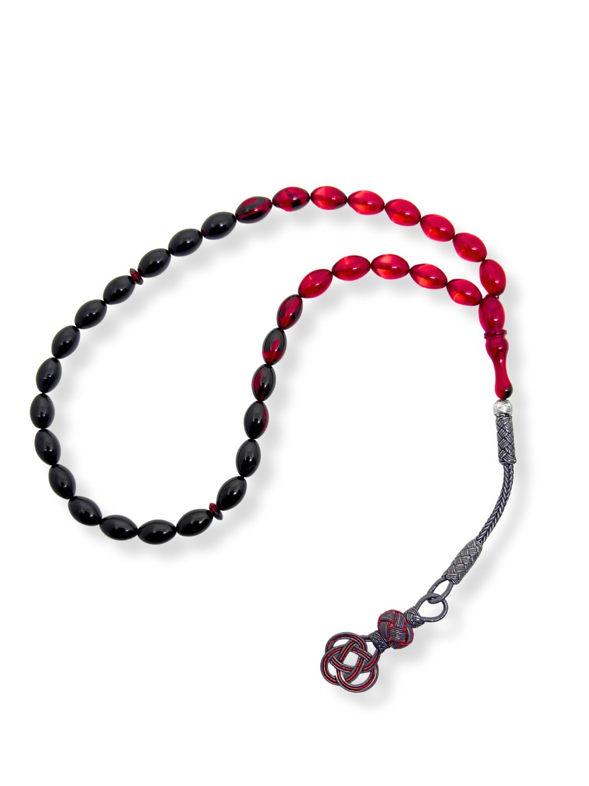 Kırmızı Kehribar Tesbih Gümüş Kazaz Püsküllü