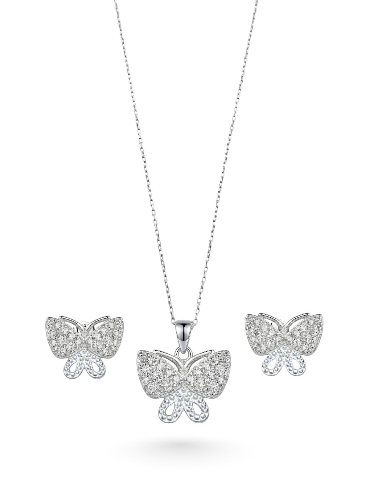 Işıltılı Kanatlar Koleksiyonu Gümüş Kelebek Set&Takım