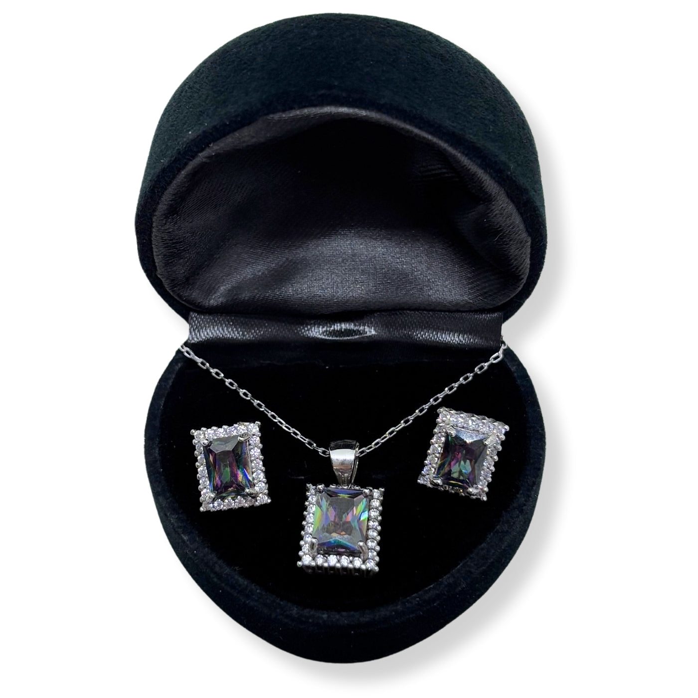 Alexandrite Shining Rectangular Silver Set & Set