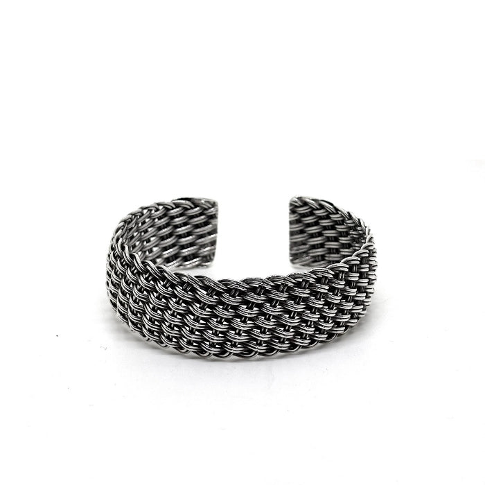 Thick Oxidized Tight Double Knit Silver Bracelet