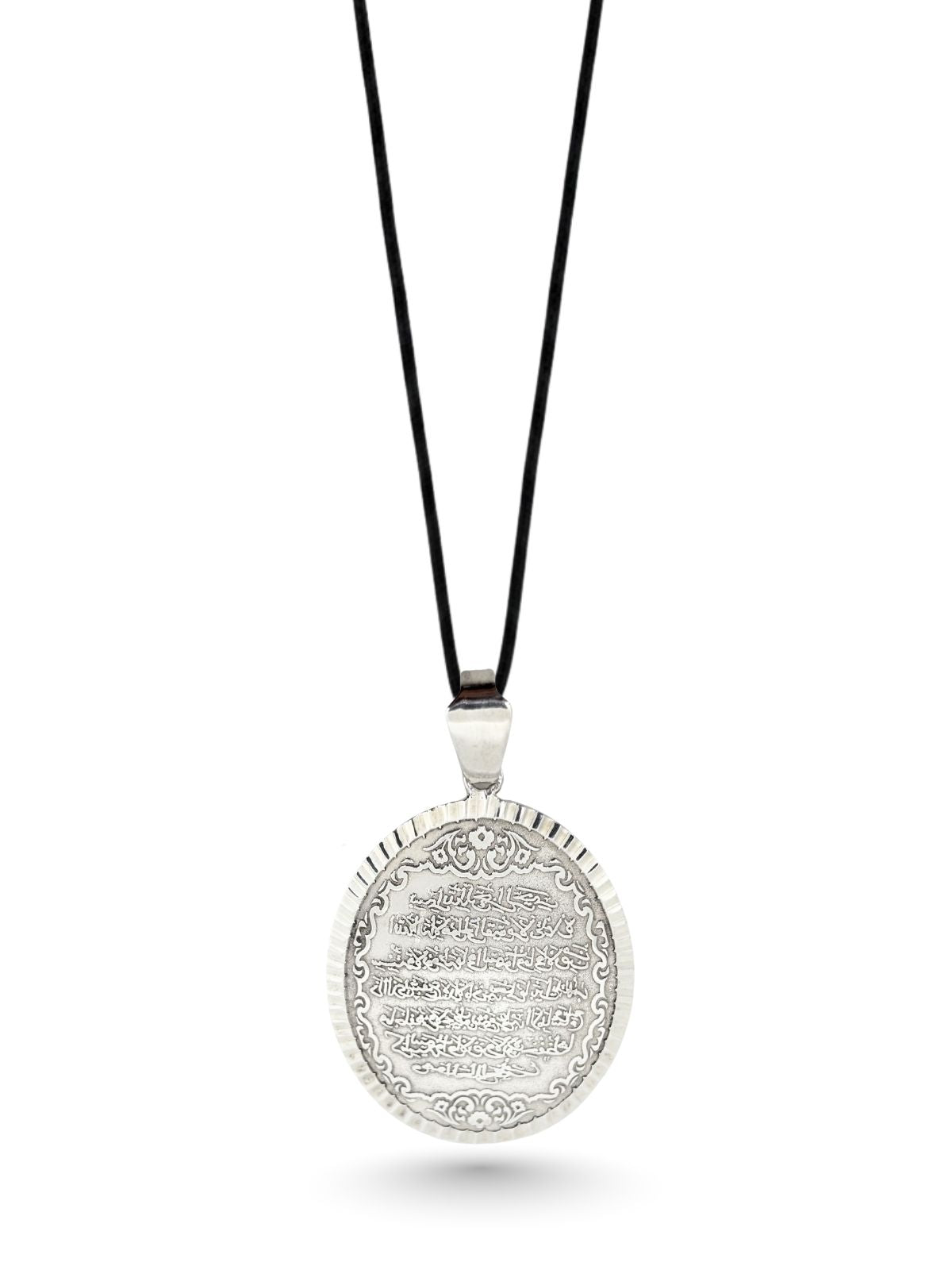 Gümüş Ayetel Kürsi Oval Madalyon Kolye 4.5x2.9 cm [OYSY186]