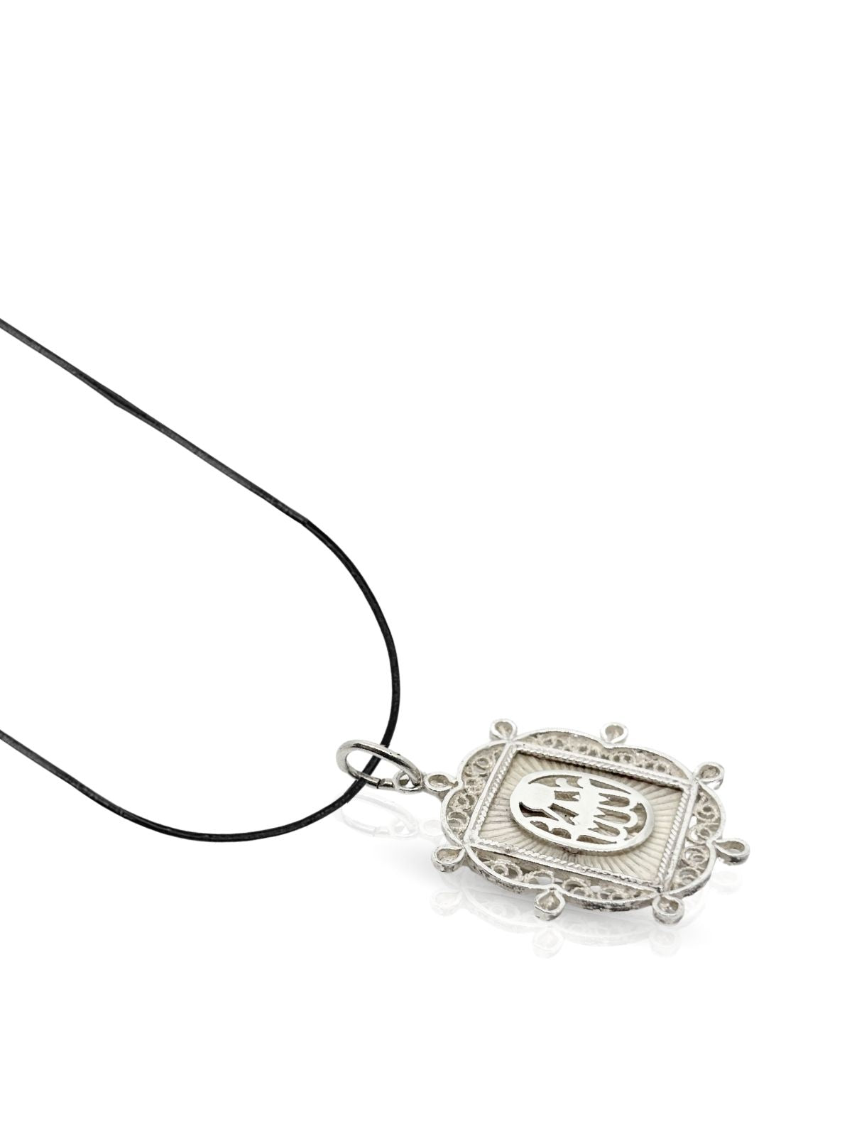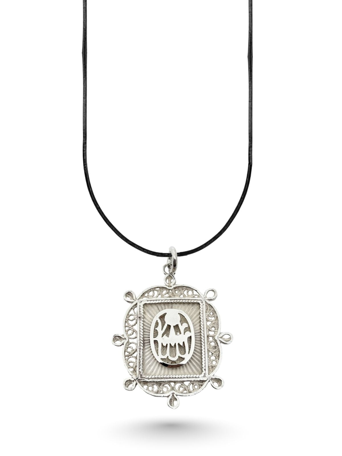 Gümüş Telkari İşlemeli Allah Yazılı Dikdörtgen Kolye 4x2.8cm [OYSY180]