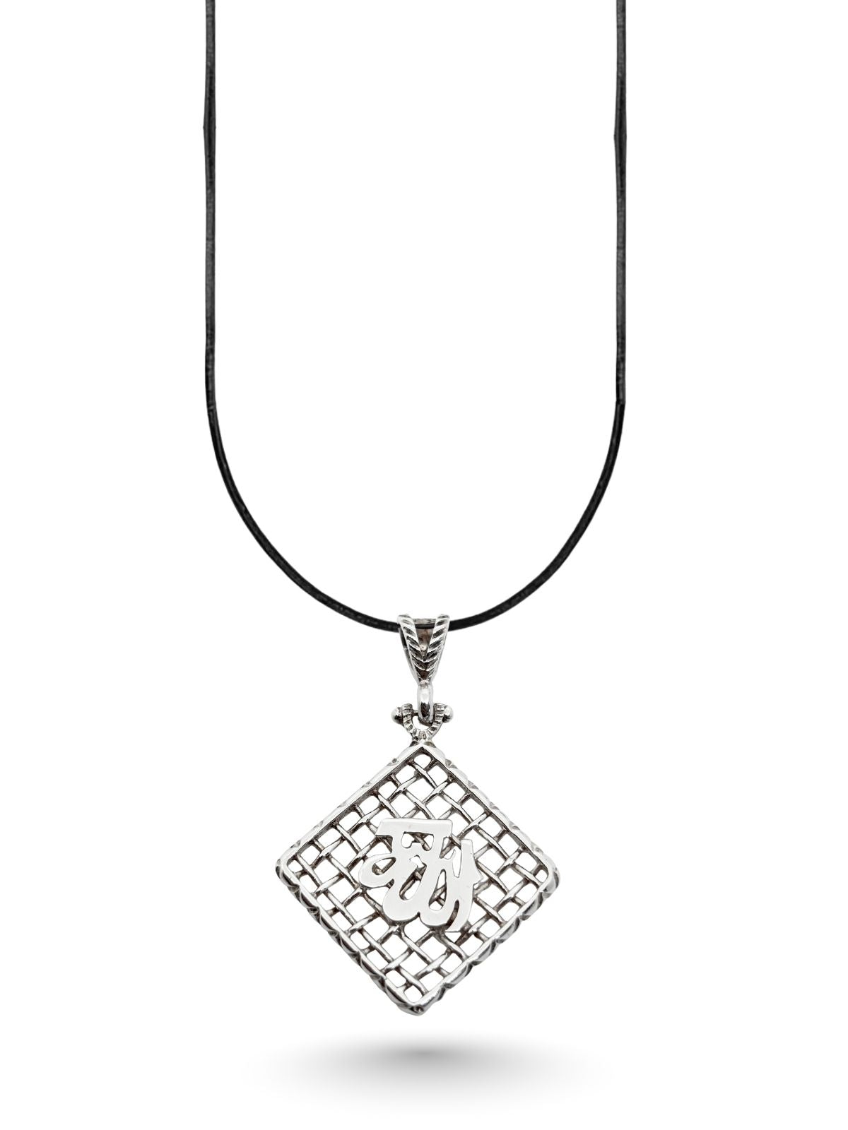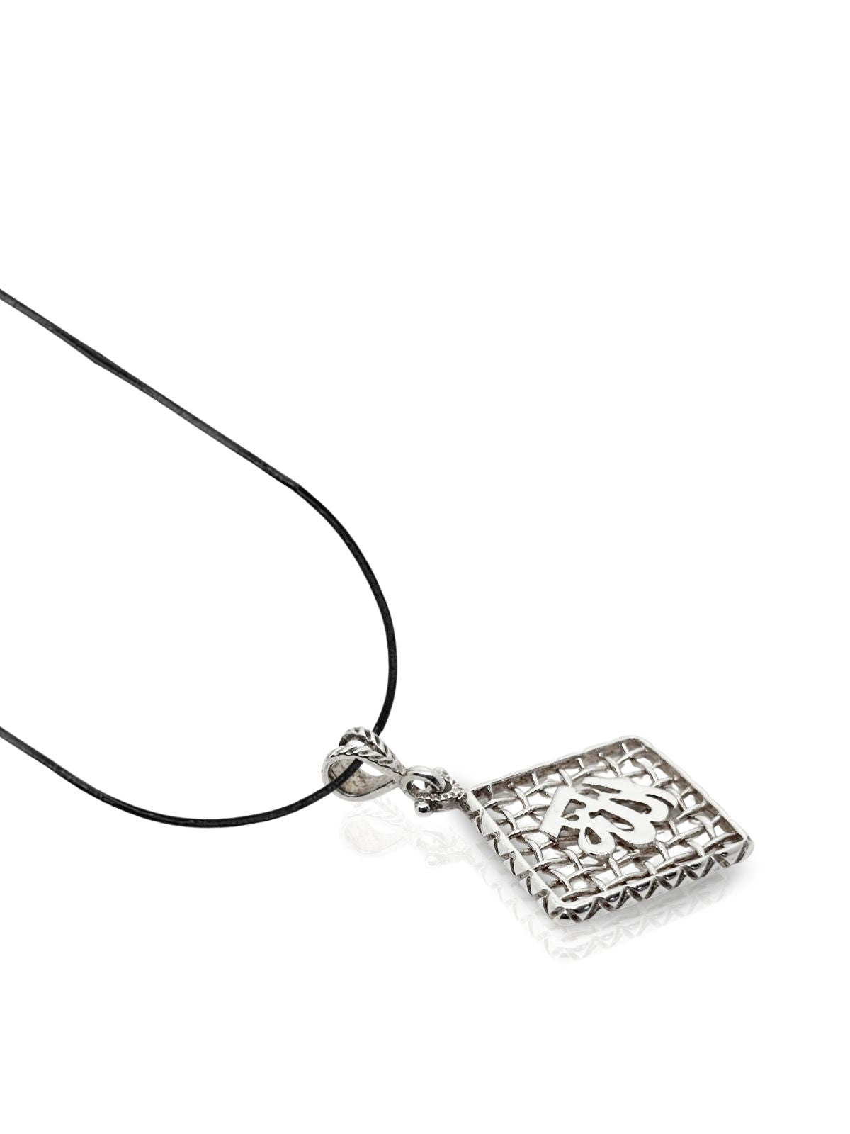 Hasır Örgü Allah Yazılı Kare Model Gümüş Kolye 4.5x3.1cm