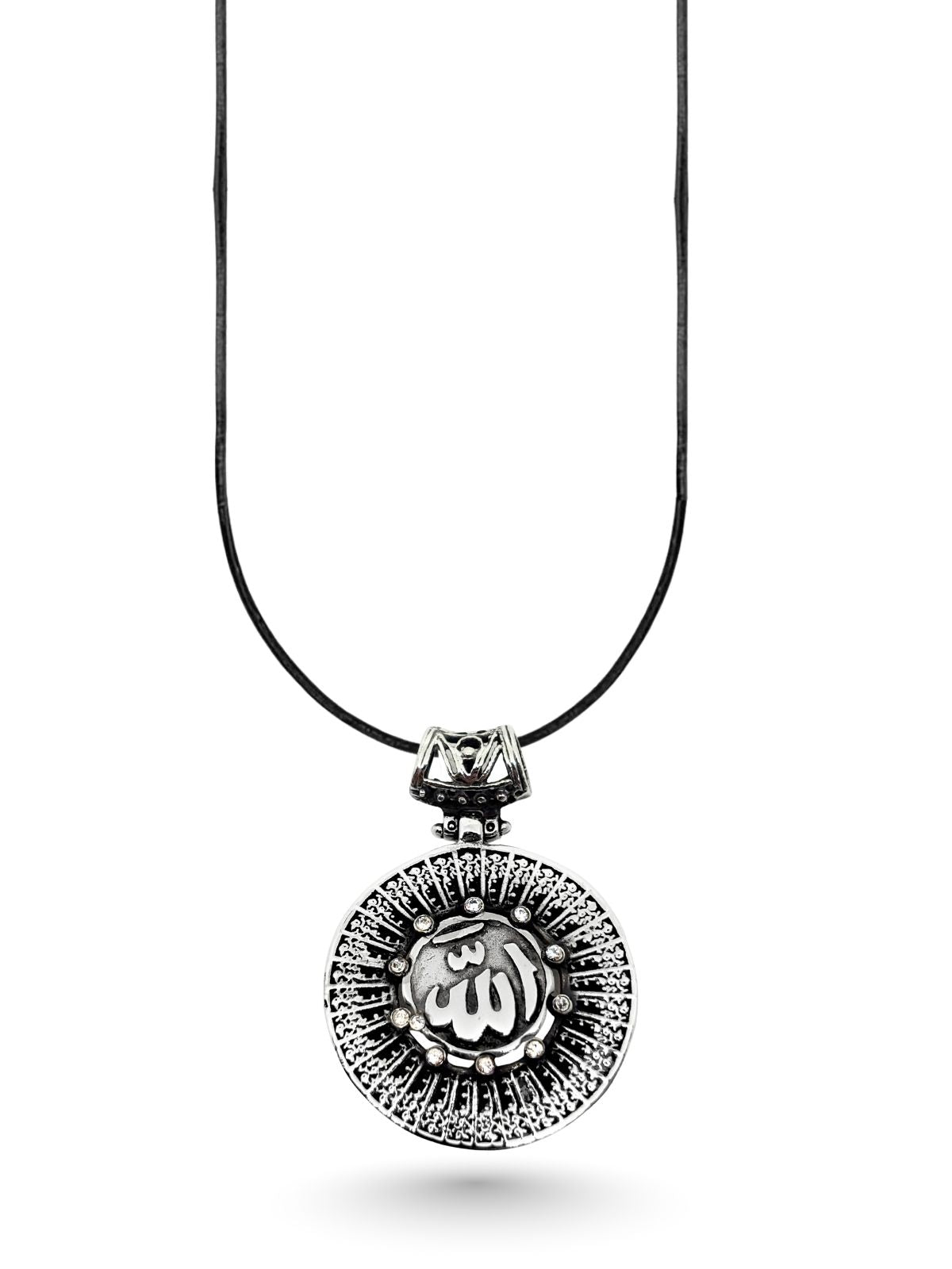 Zirkon Taşlı Allah Yazılı Gümüş Madalyon Kolye 4.5x3.2cm