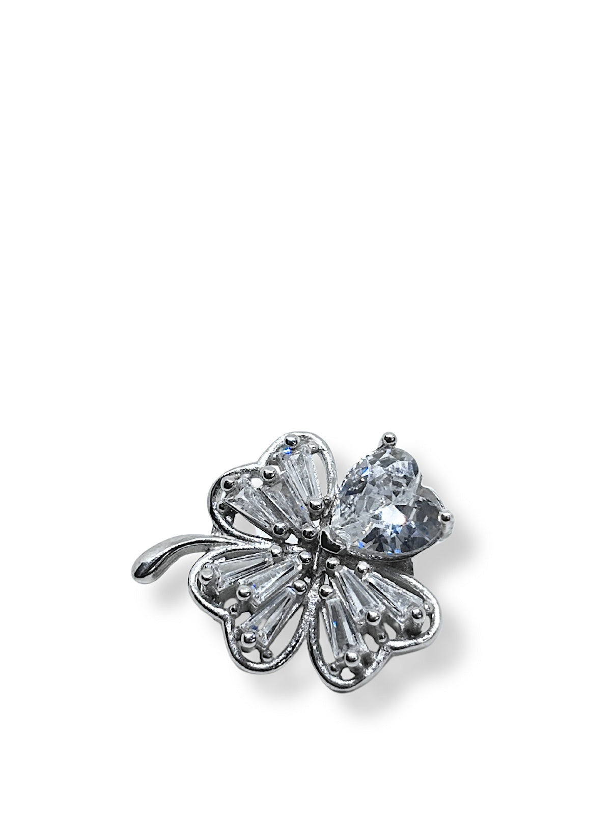 Baget Taşlı Yonca Kadın Gümüş Broş Yaka İğnesi 2.5x1.7cm