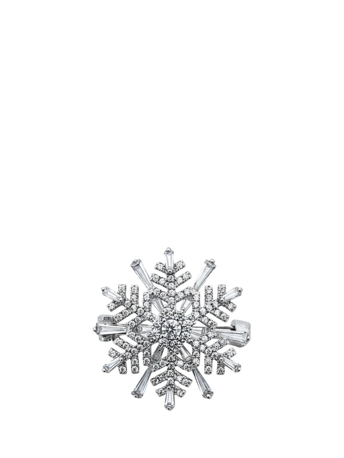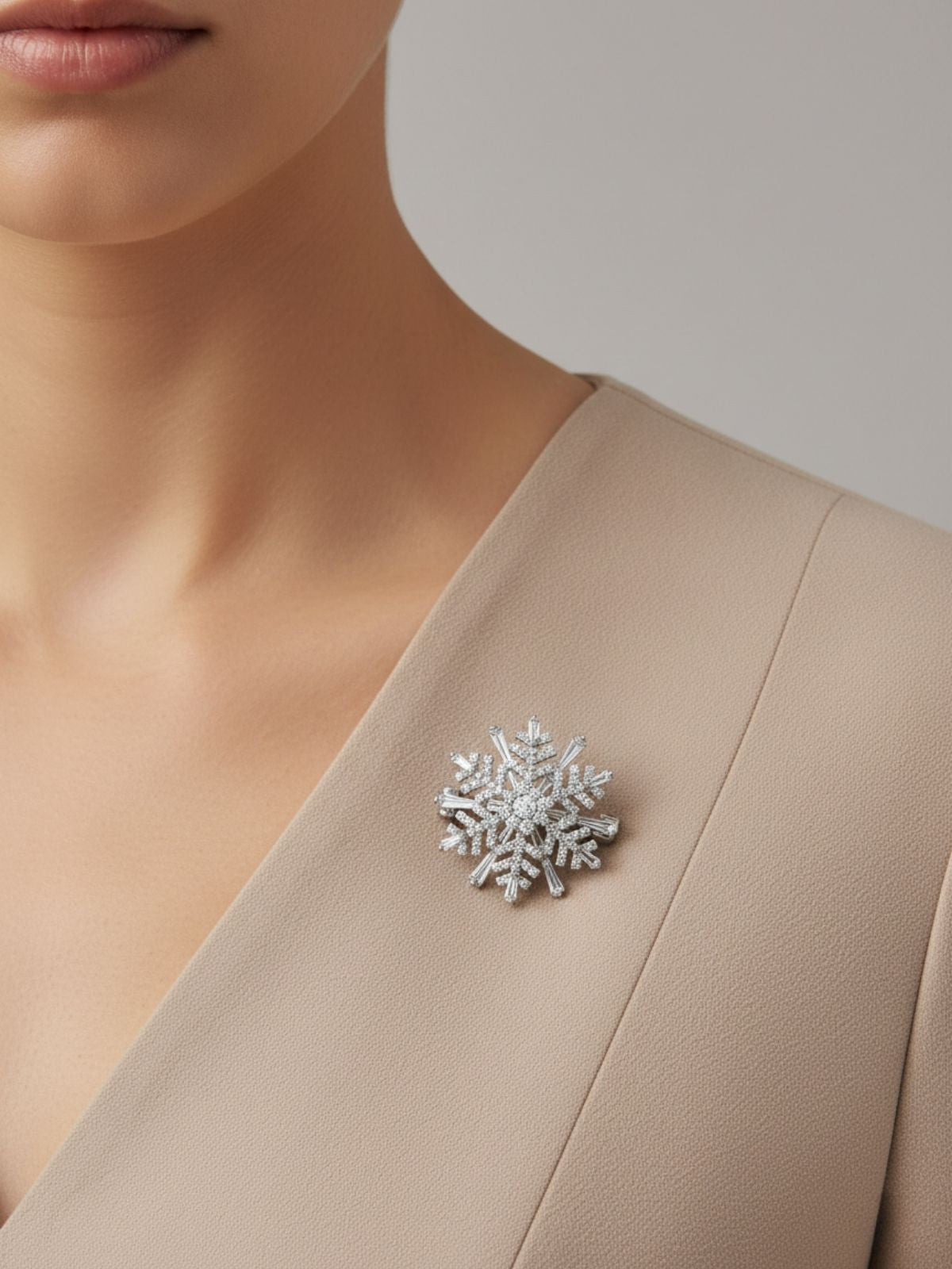 Beyaz Işıltılı Baget Taşlı Kar Tanesi Kadın Gümüş Broş Yaka İğnesi 2.5x2.5cm