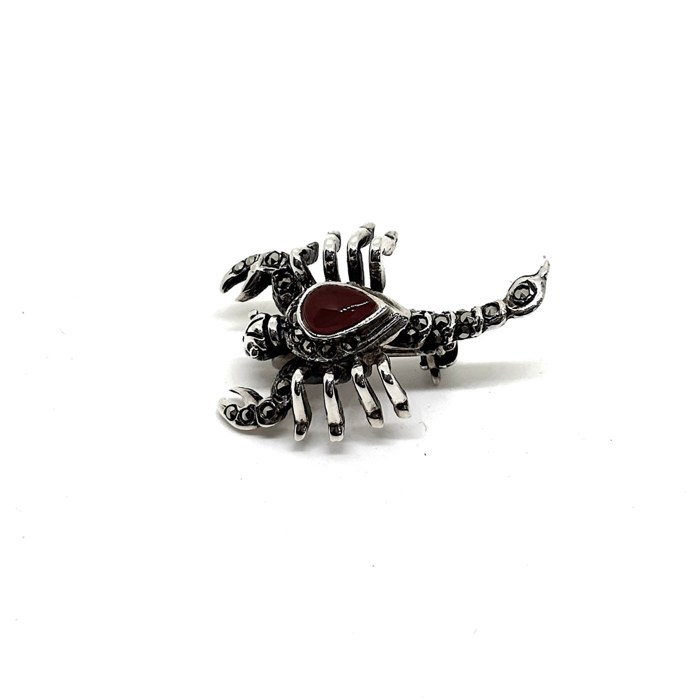 Silver Agate and Marcasite Stone Scorpion Brooch - Nature's Jewels Collection
