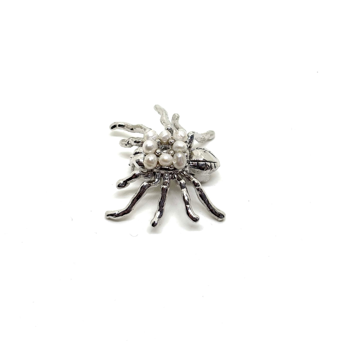 Silver Pearl Spider Brooch - Nature's Jewels Collection