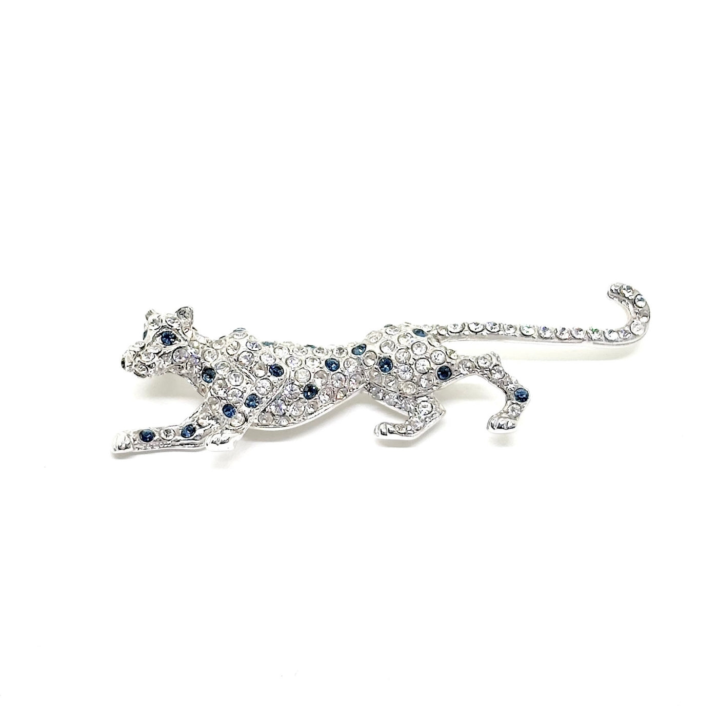 Silver Leopard Brooch Blue Splendor - Nature's Jewels Collection