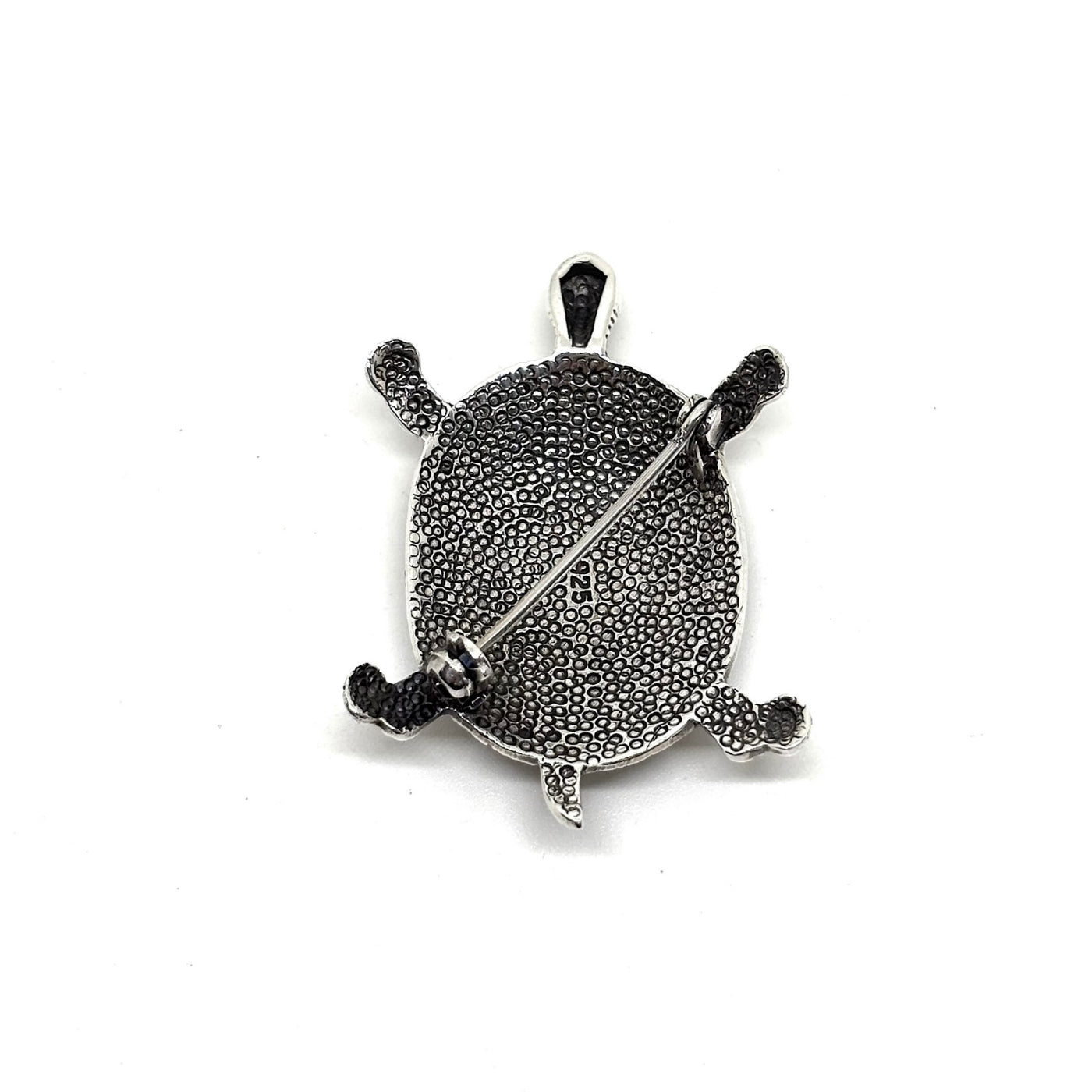 Silver Turtle Brooch with Marcasite Surrounded White Mother of Pearl