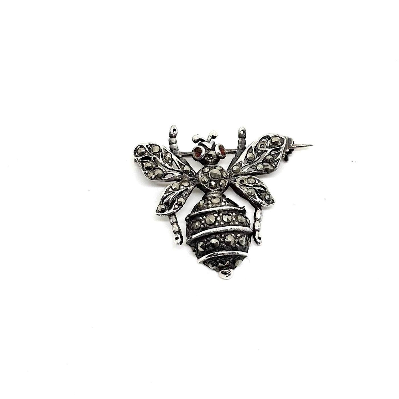 Silver Bee Brooch with Marcasite Stone - Nature's Jewels Collection