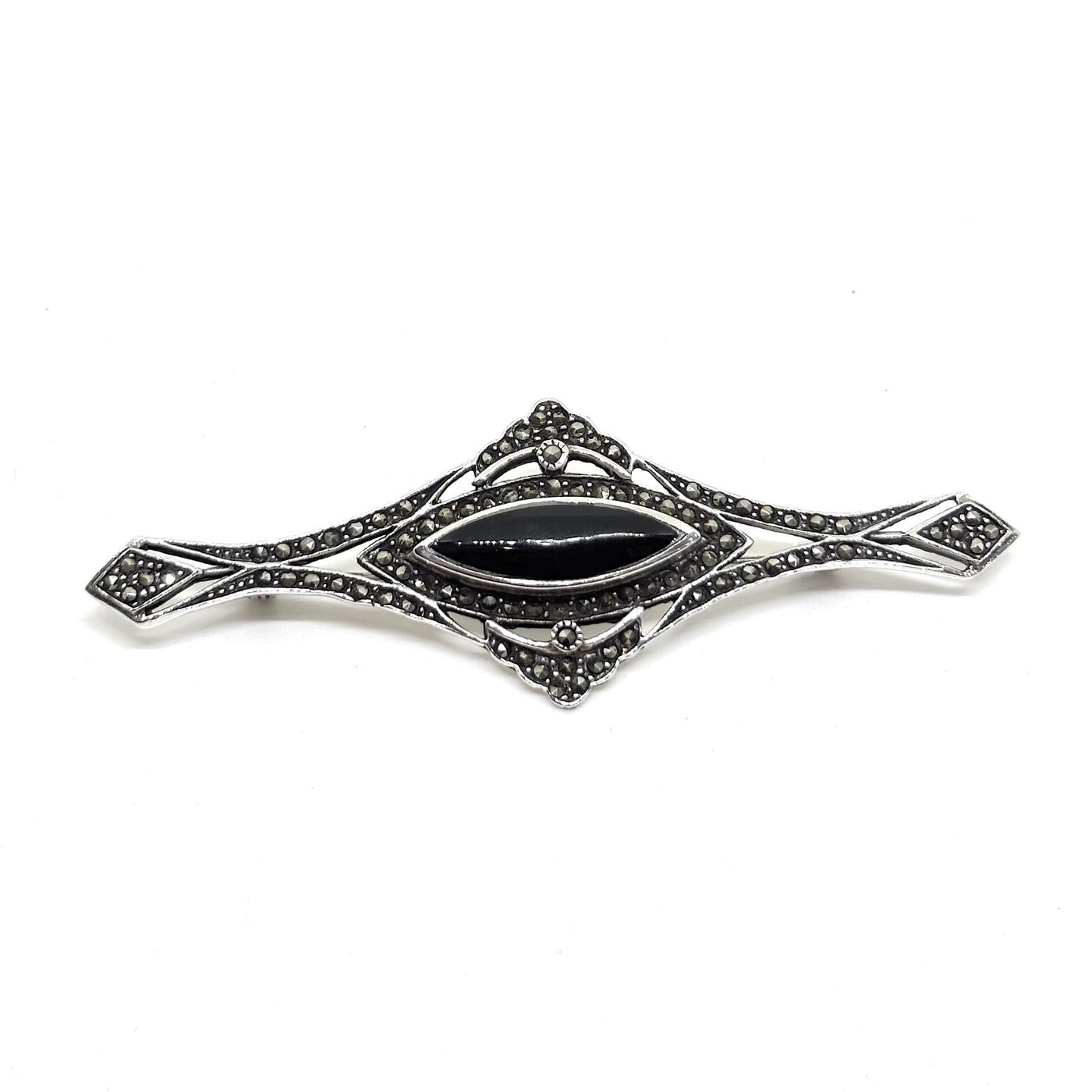 Marcasite Stone Enameled Silver Brooch