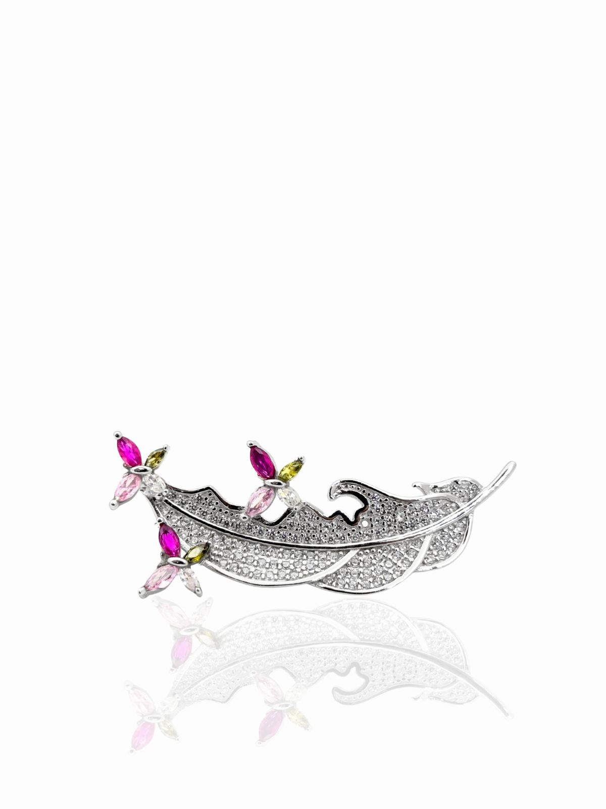 Mini Kelebekli Kuş Tüyü Gümüş Broş – 4.2x1.8 cm