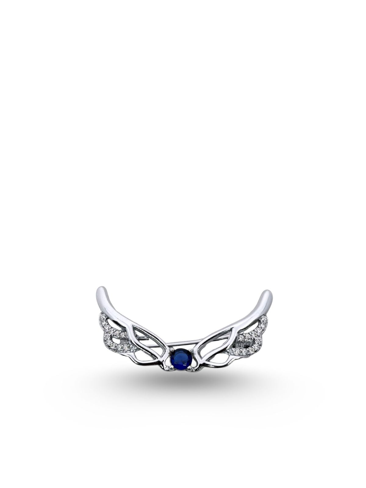 Safir Taşlı Melek Kanadı Gümüş Broş – 3x1.7 cm