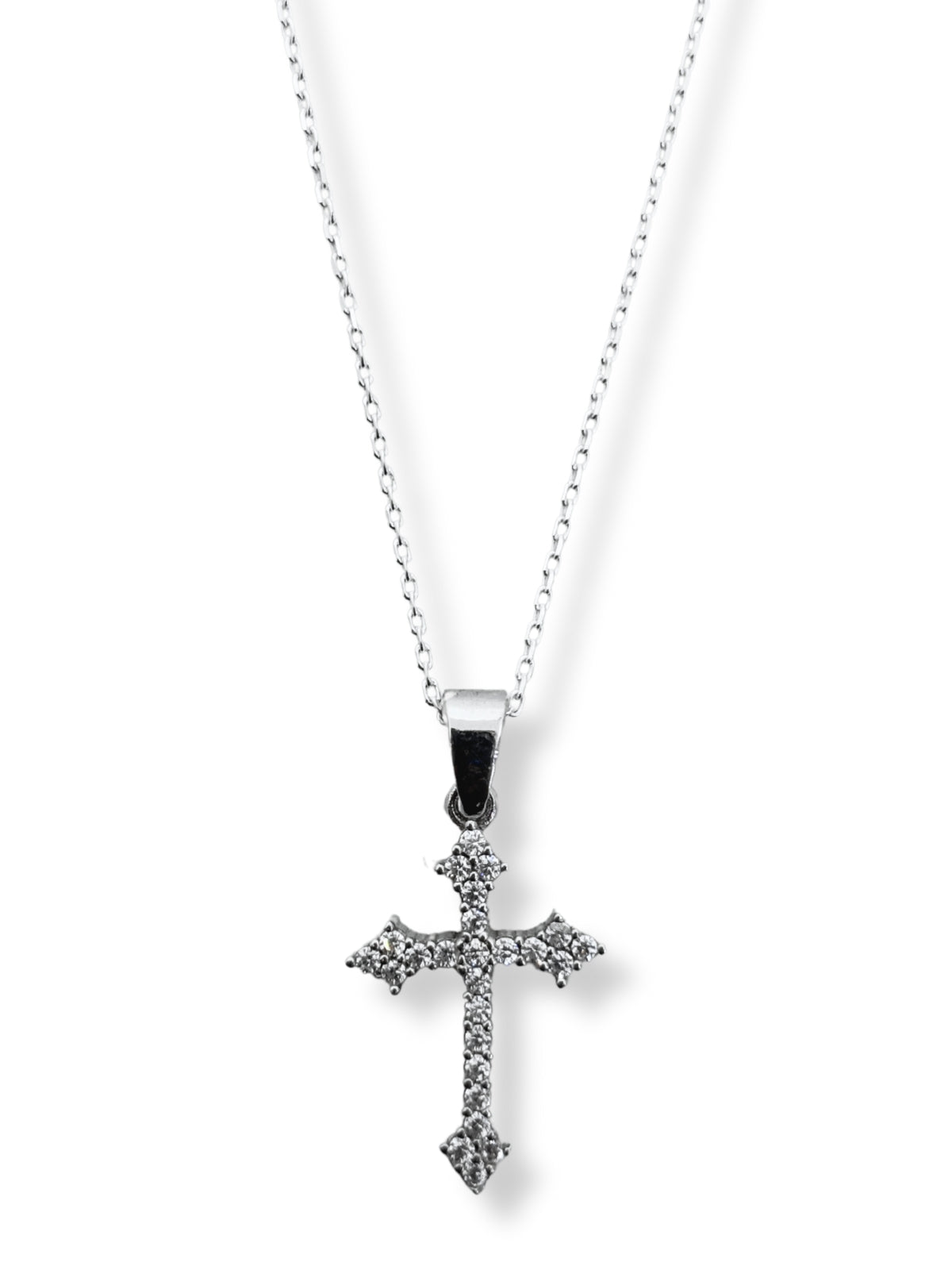 Sivri Köşeli Haç Gümüş Kadın Kolye