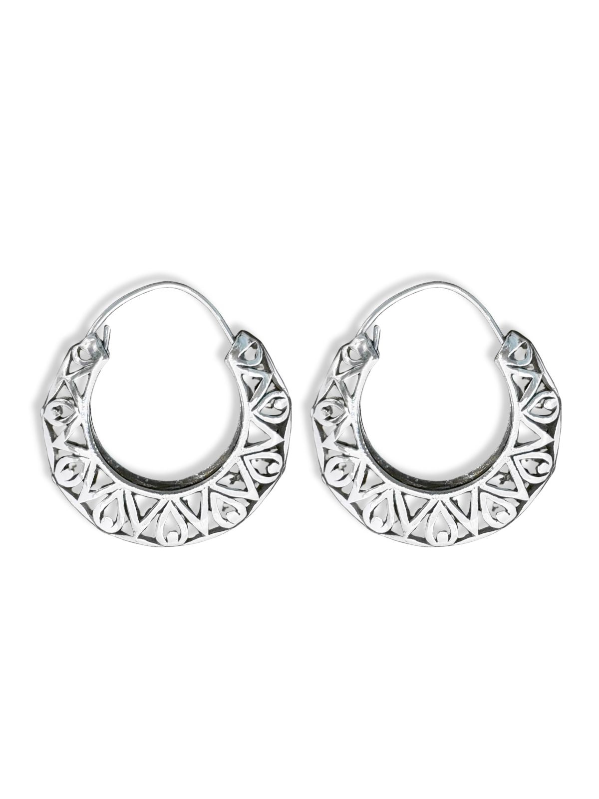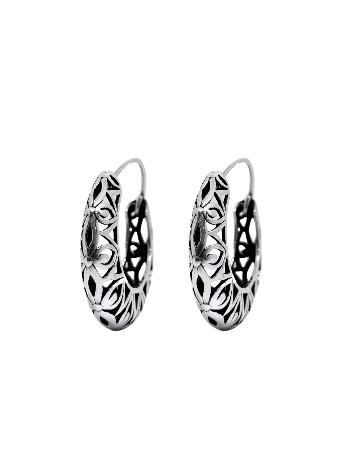El İşçiliği Motifli Kadın Gümüş Halka Küpe 3x3CM