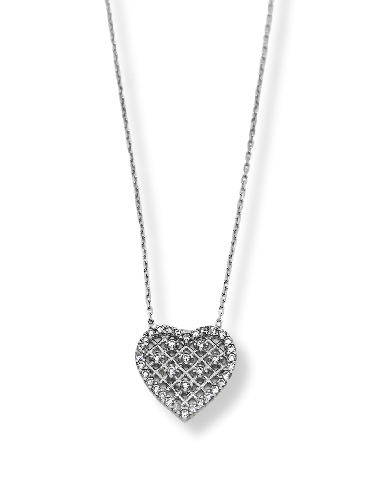 Beyaz Işıltılı Hearty Kalp Kadın Hayalet Gümüş Kolye