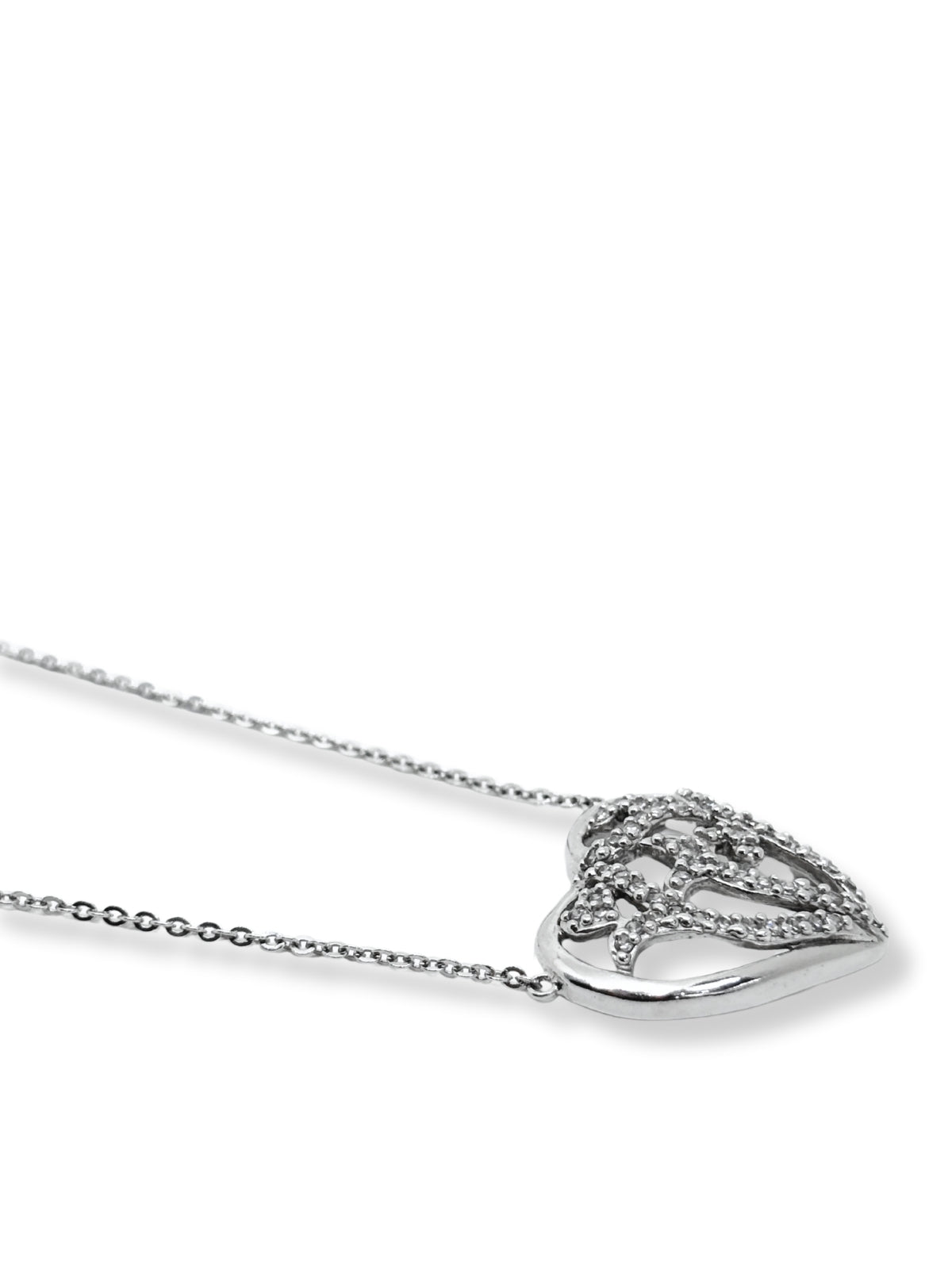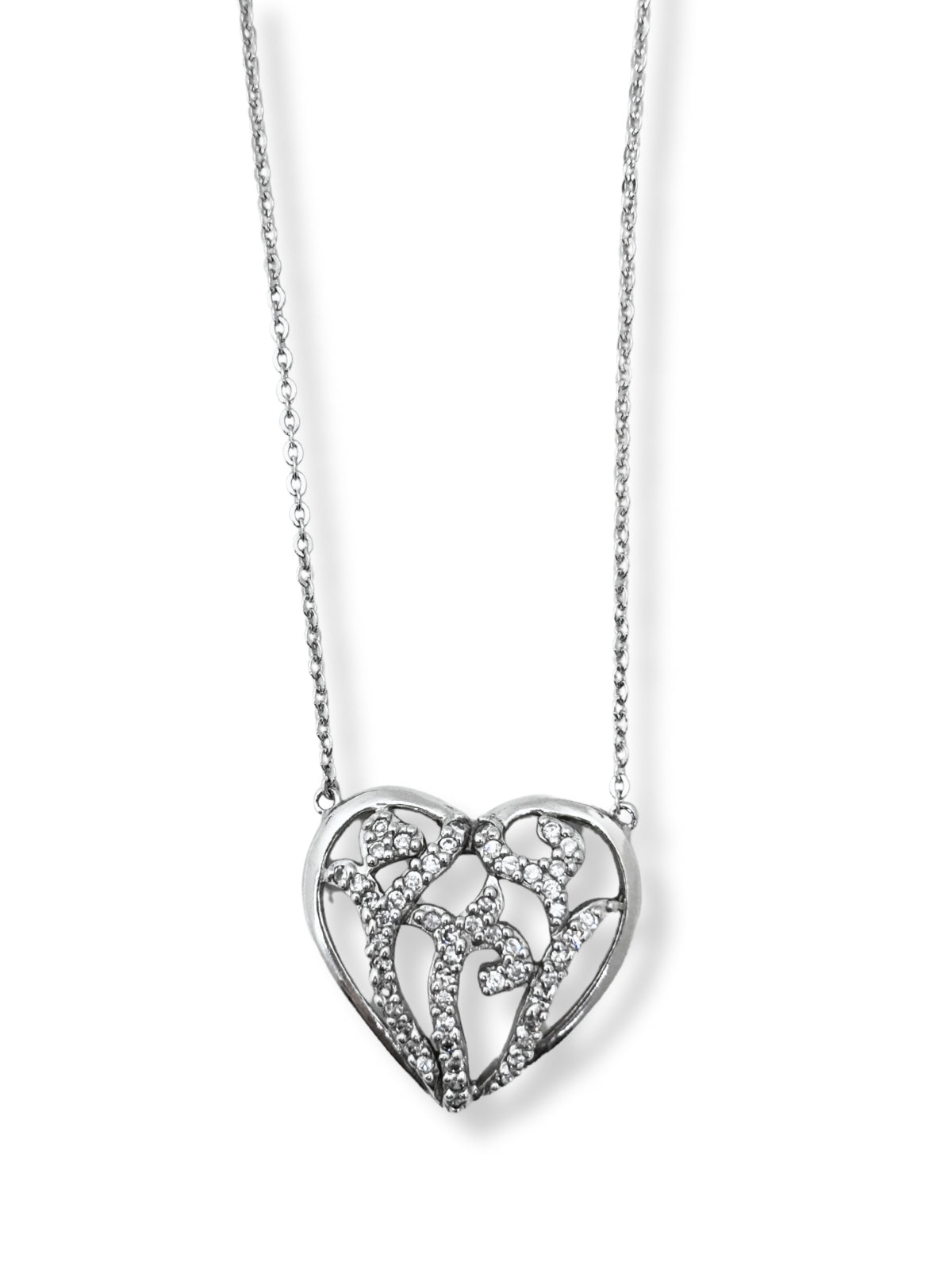 Beyaz Işıltılı İri Kalp Hayalet Gümüş Kadın Kolye