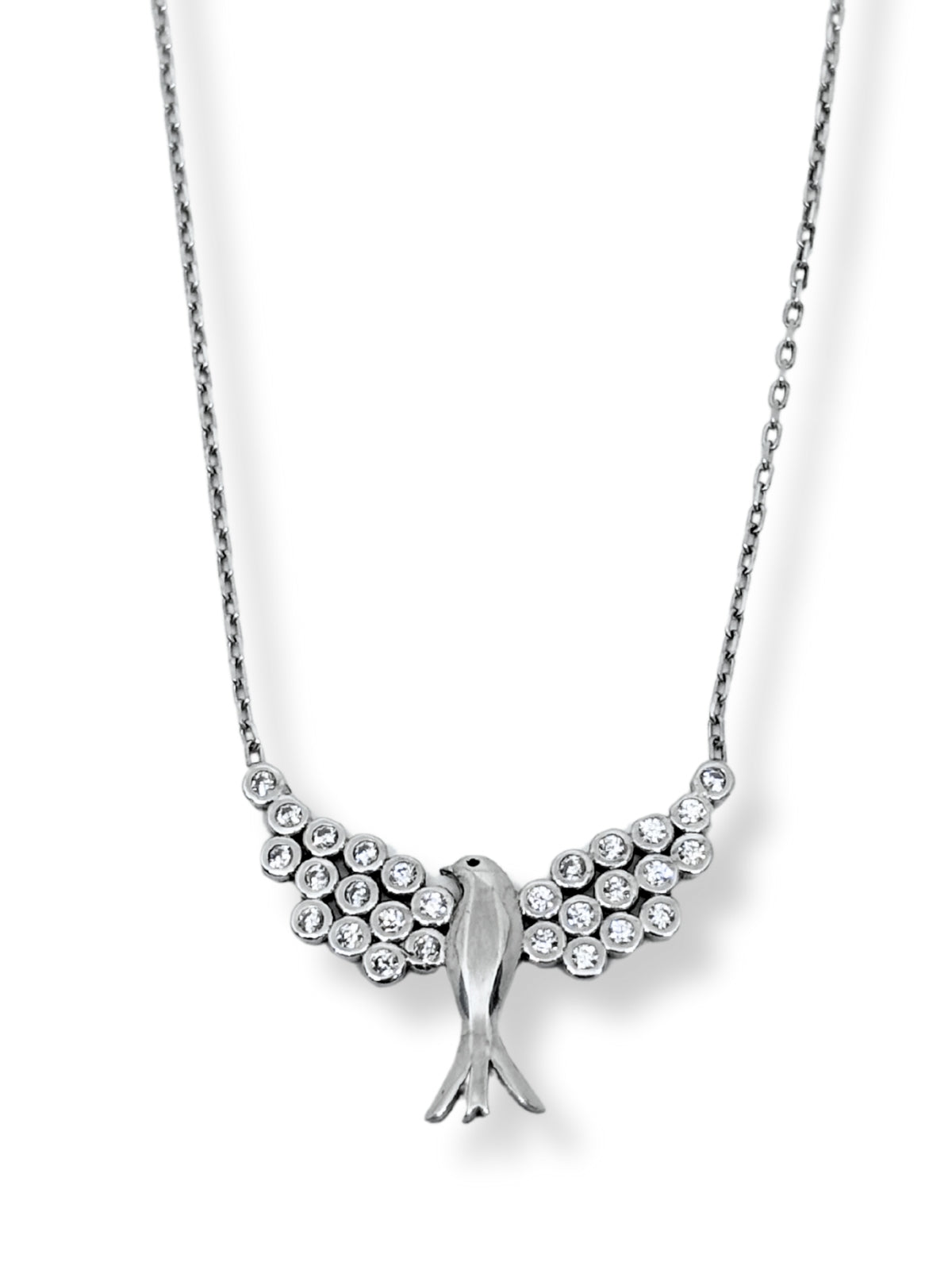 Beyaz Işıltılı Kanatlı Anka Kuşu Gümüş Kadın Kolye