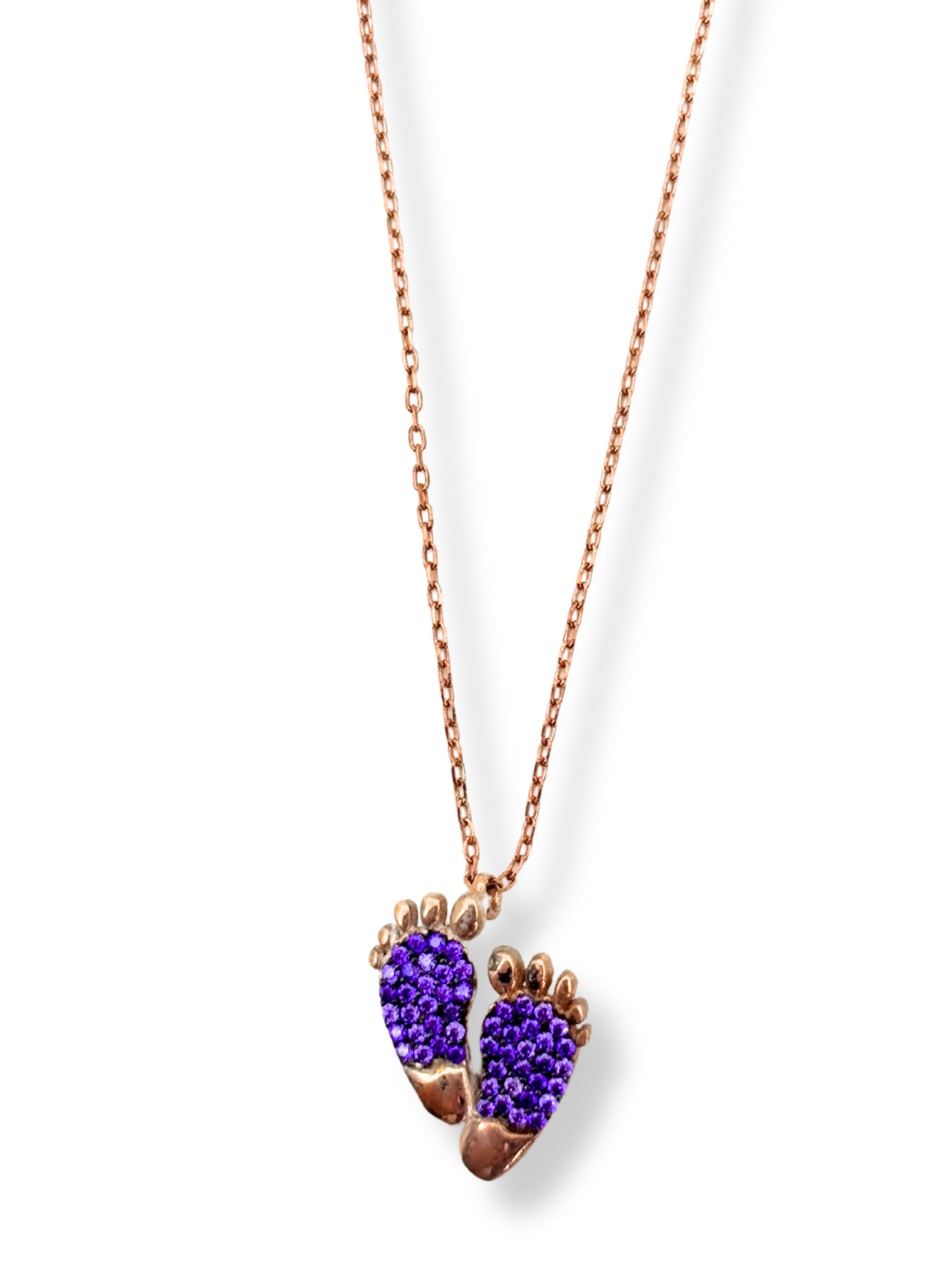 Mor Işıltılı Anne Bebek Ayak İzi Hayalet Gümüş Kadın Kolye
