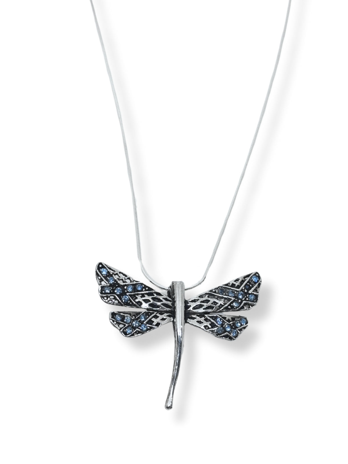 Kanatları Mavi Işıltılı Yusufçuk Gümüş Kadın Kolye