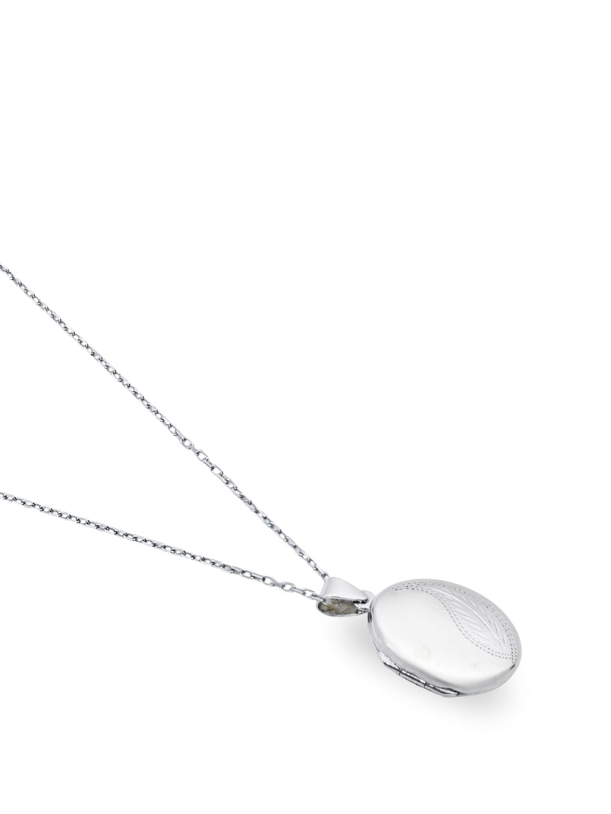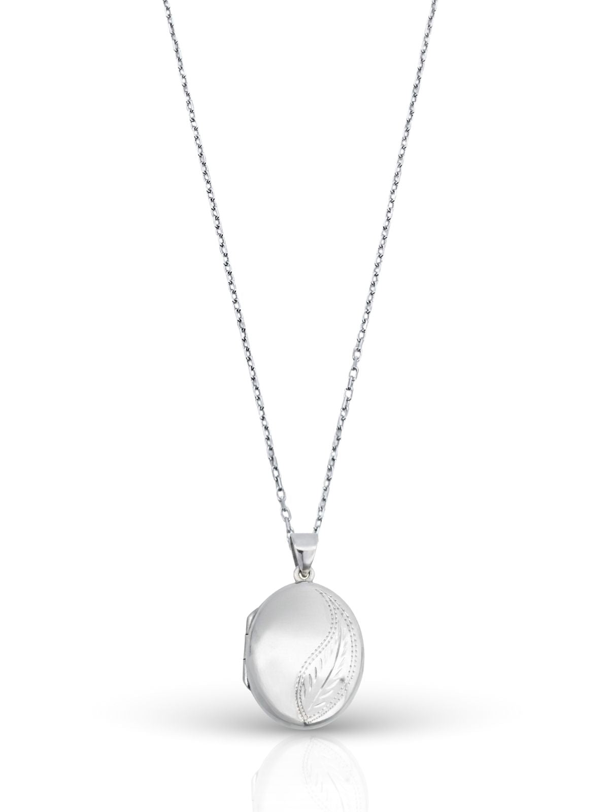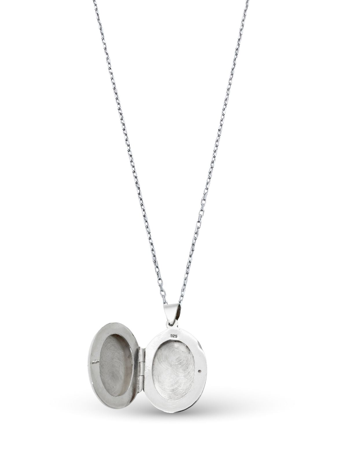 Lazer Yaprak İşlemeli Oval Kapaklı Gümüş Fotoğraf Kolye 2.5x2.1 cm