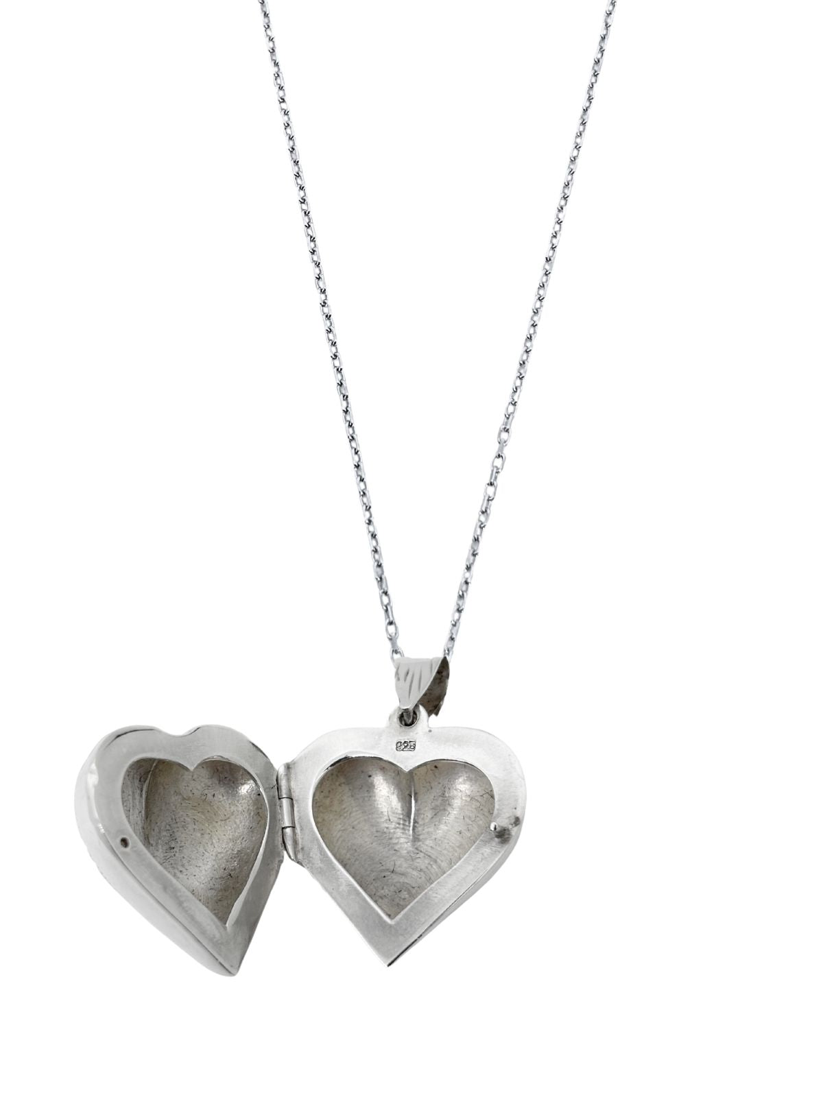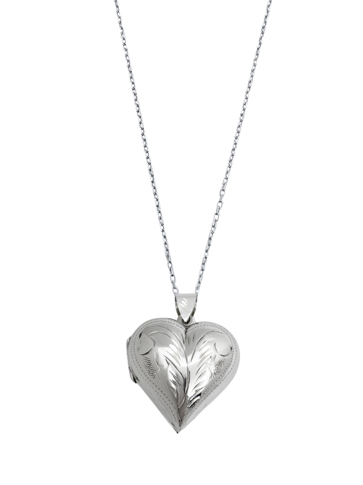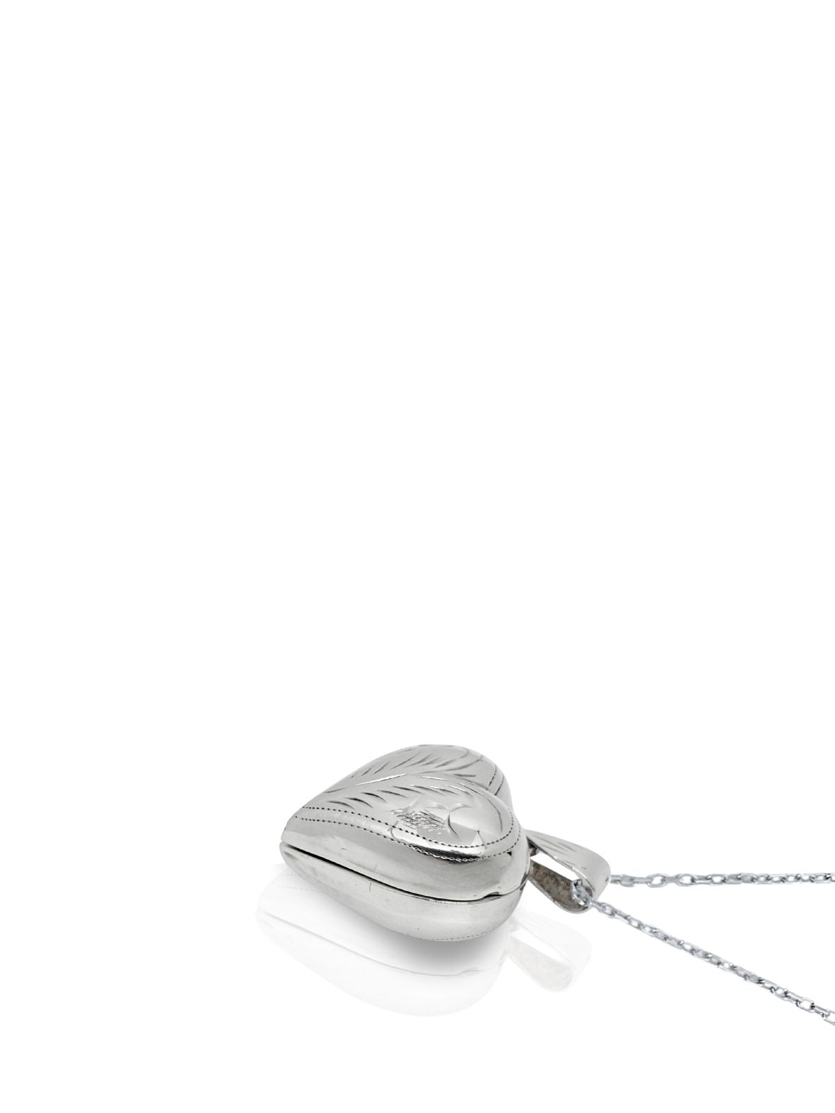 Puffy Kalp Lazer İşleme Kapaklı Gümüş Kolye 3.2x2.5 cm