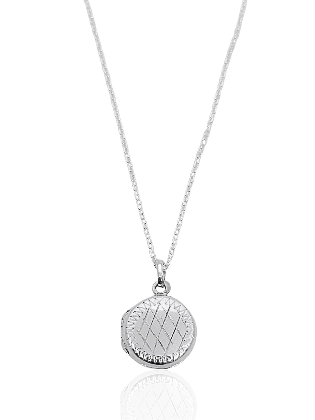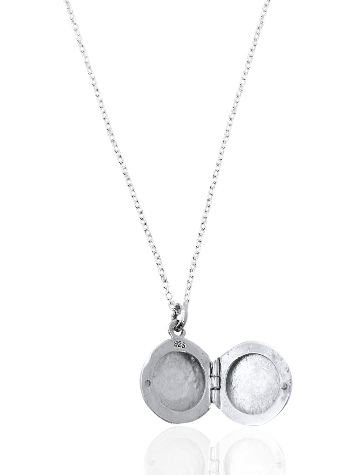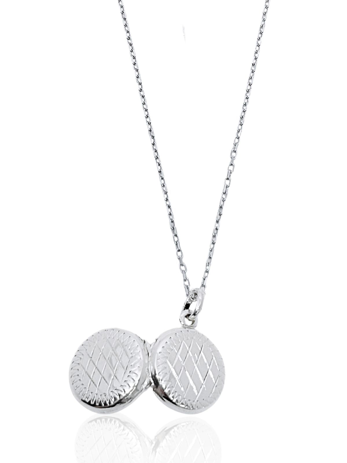 Yuvarlak Lazer İşlemeli Kapaklı Gümüş Fotoğraflık Kolye