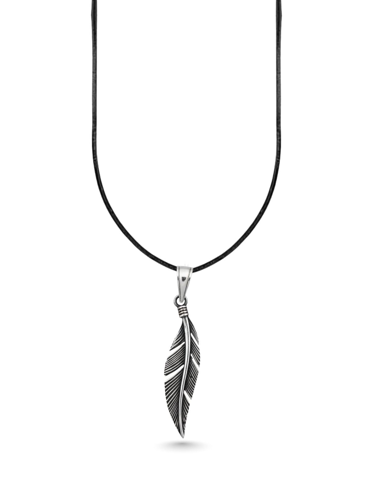 Zarif Gümüş Kuş Tüyü Kolye 3.9x0.8 cm [OYSY213]
