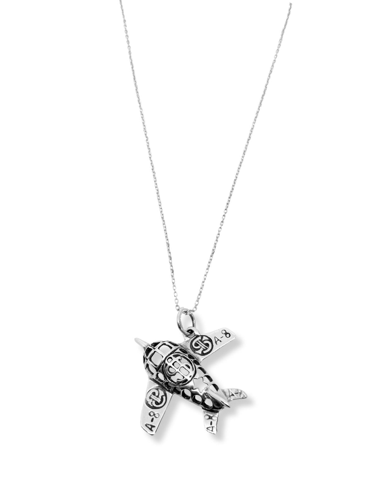 A-8 Gümüş Uçak Kolyesi – Vintage Savaş Uçağı 3.7x3.5 cm