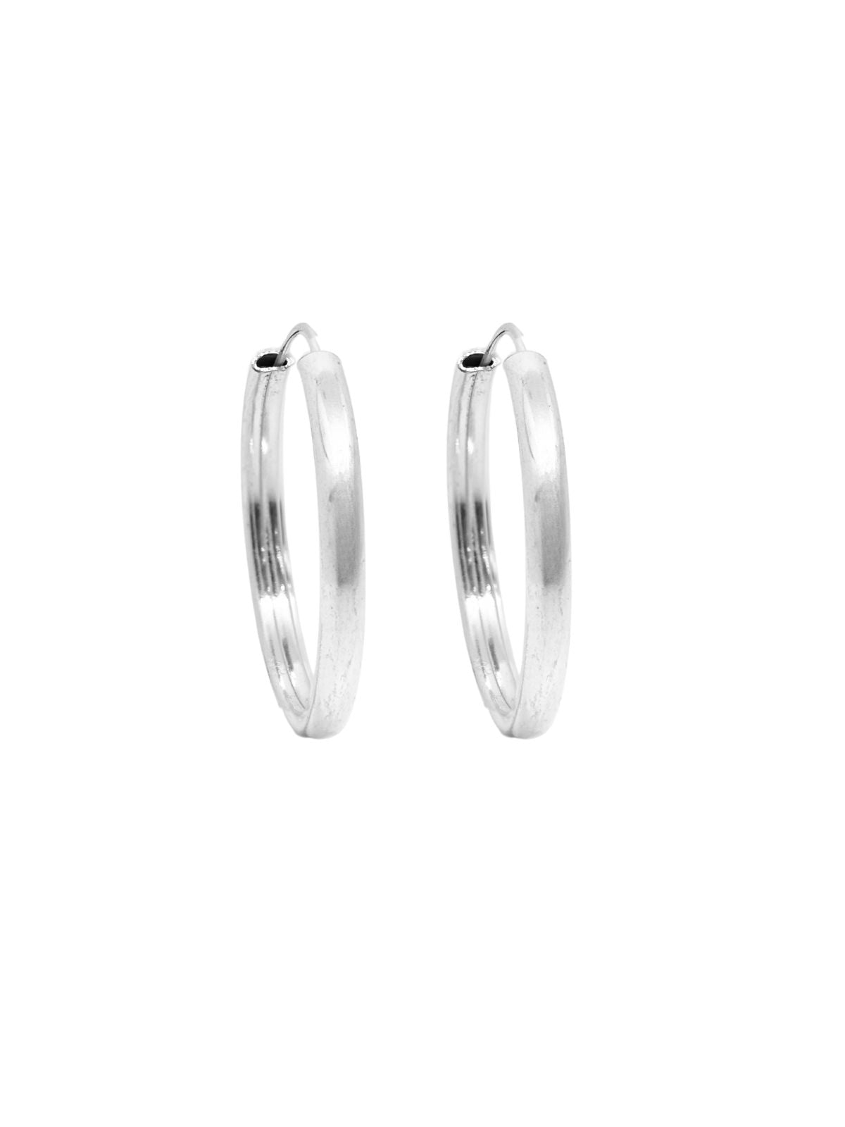 Oval Hatlı Yuvarlak Gümüş Halka Küpe 3mm Kalınlık