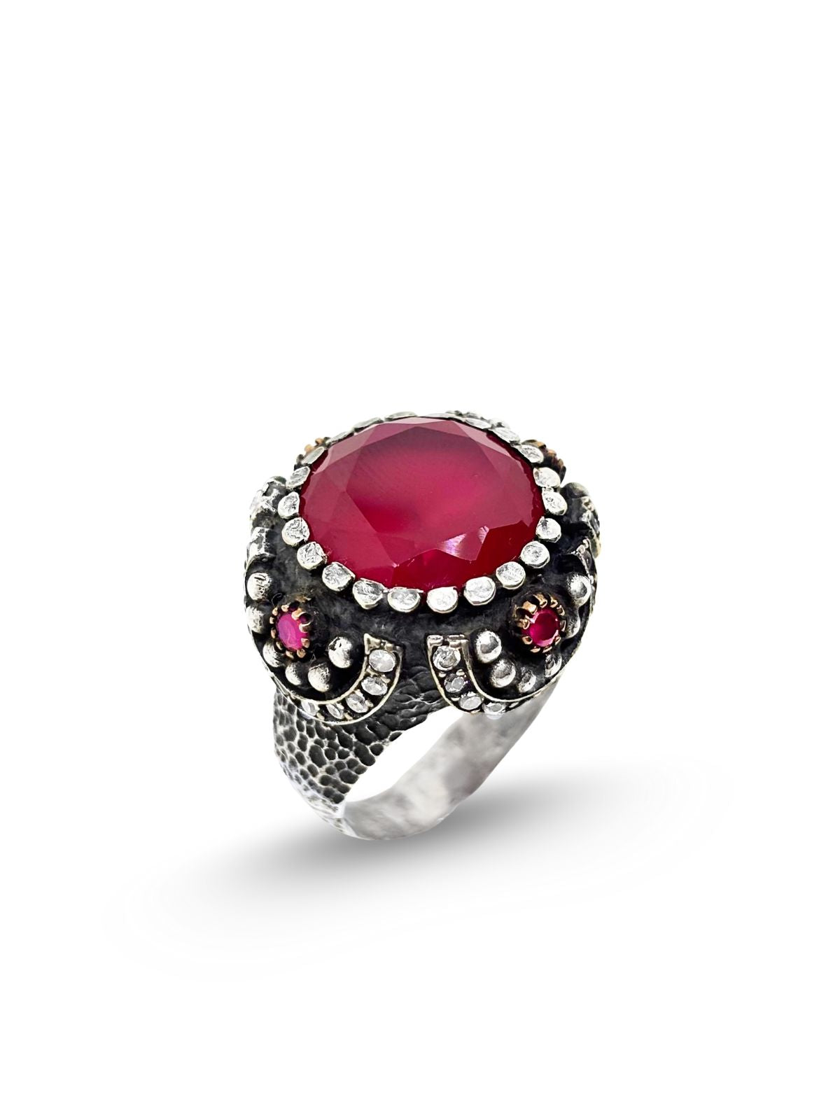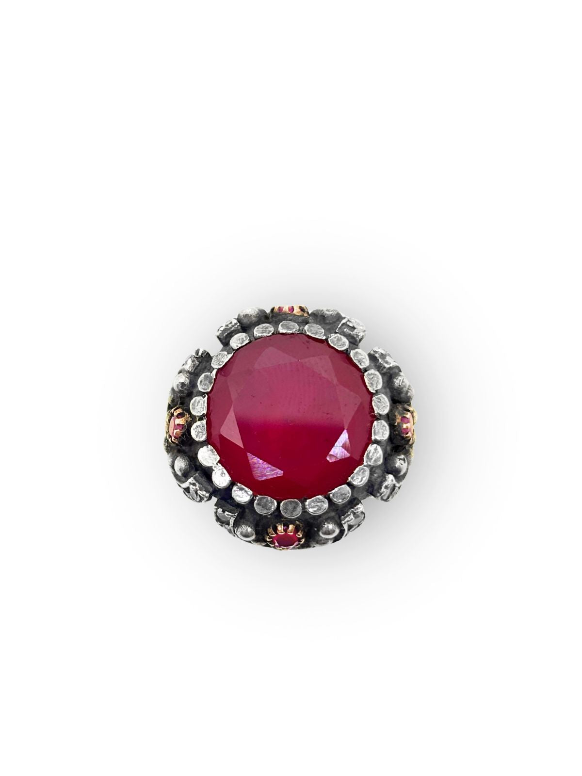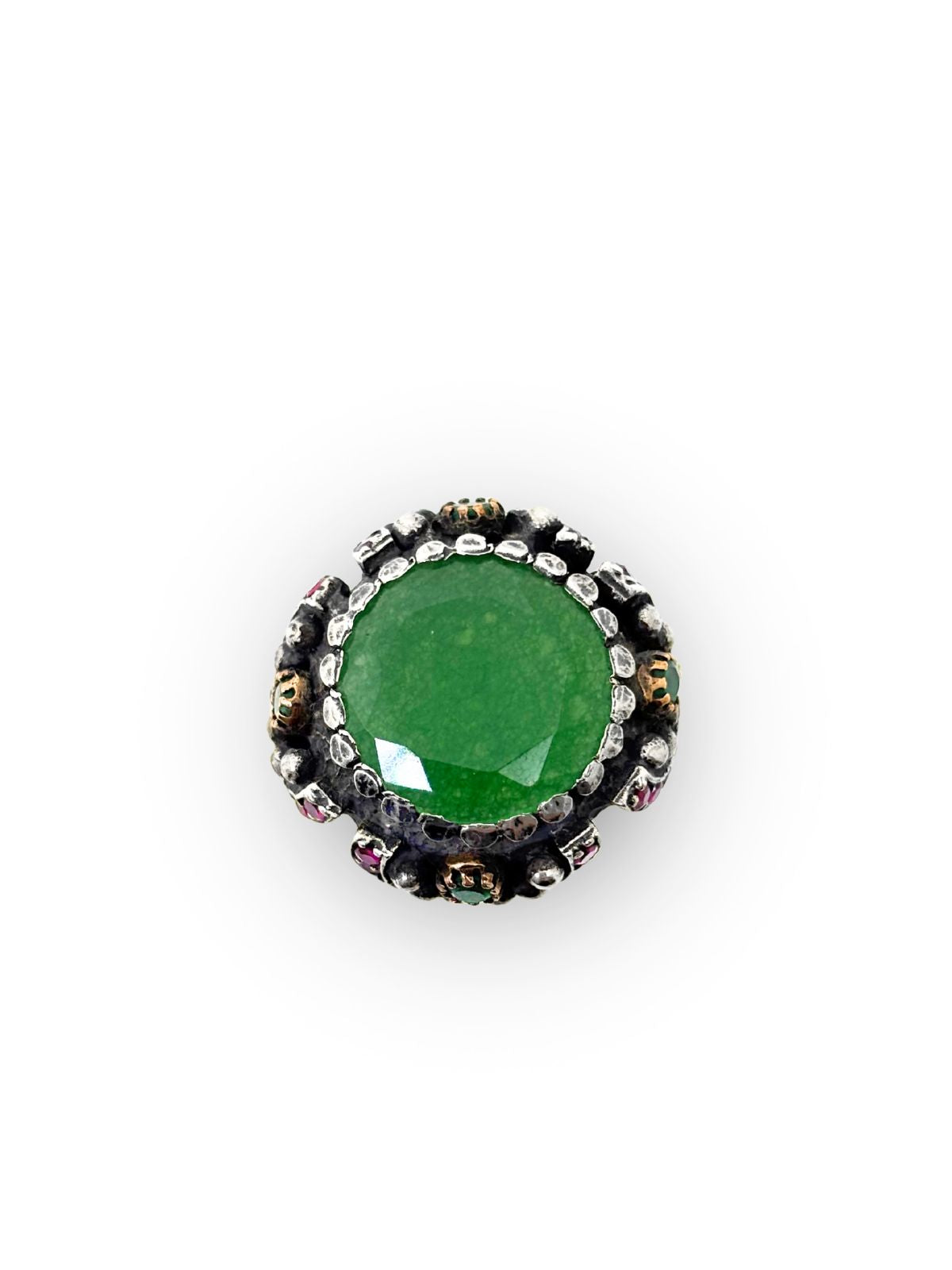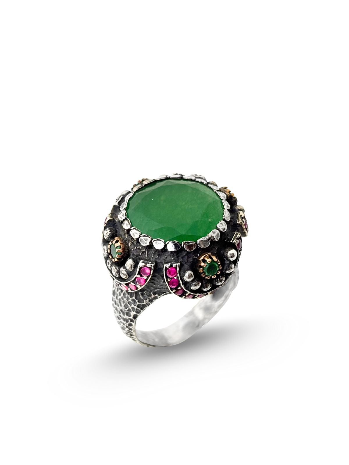 Otantik Yakut ve Zümrüt Taşlı Gümüş Kadın Yüzük