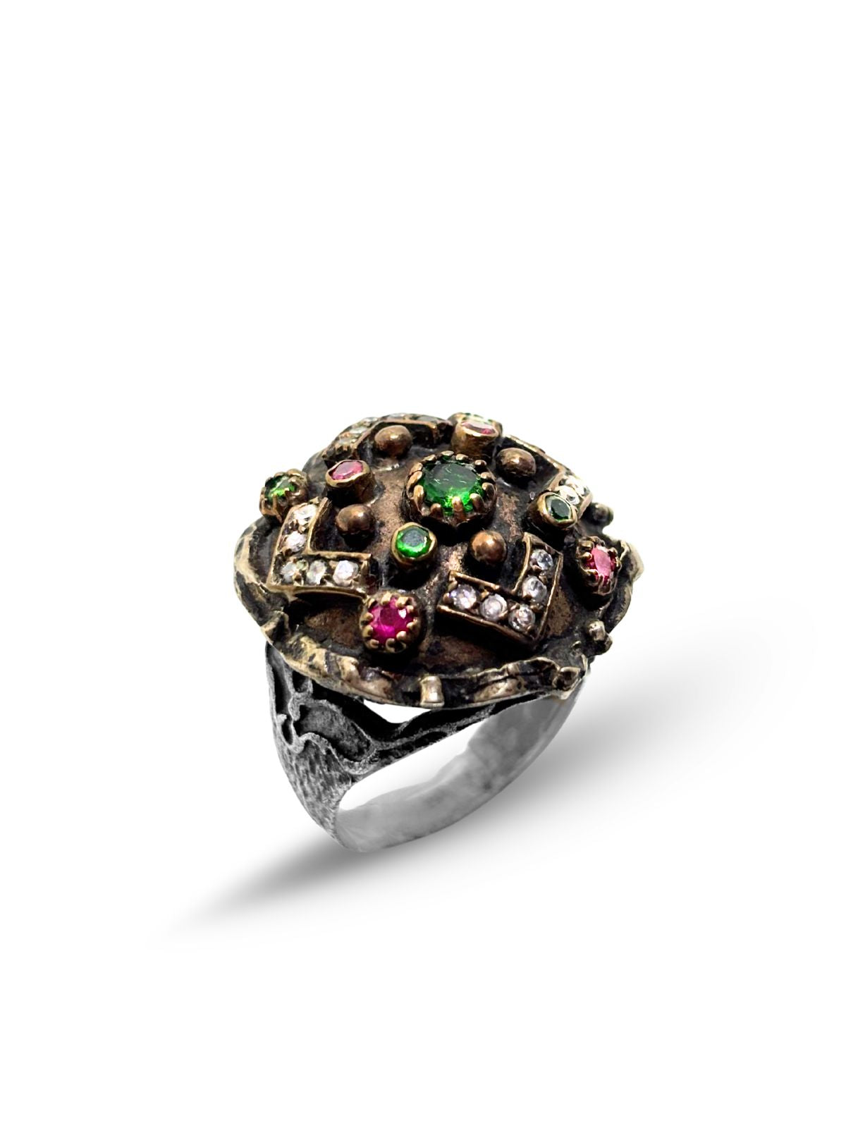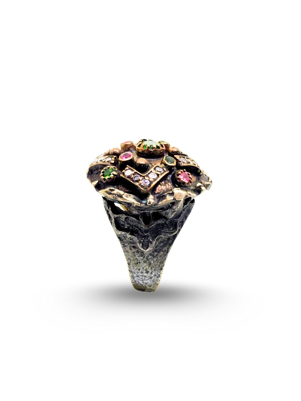 Otantik Yakut Zümrüt Taşlı Gümüş Kadın Yüzük