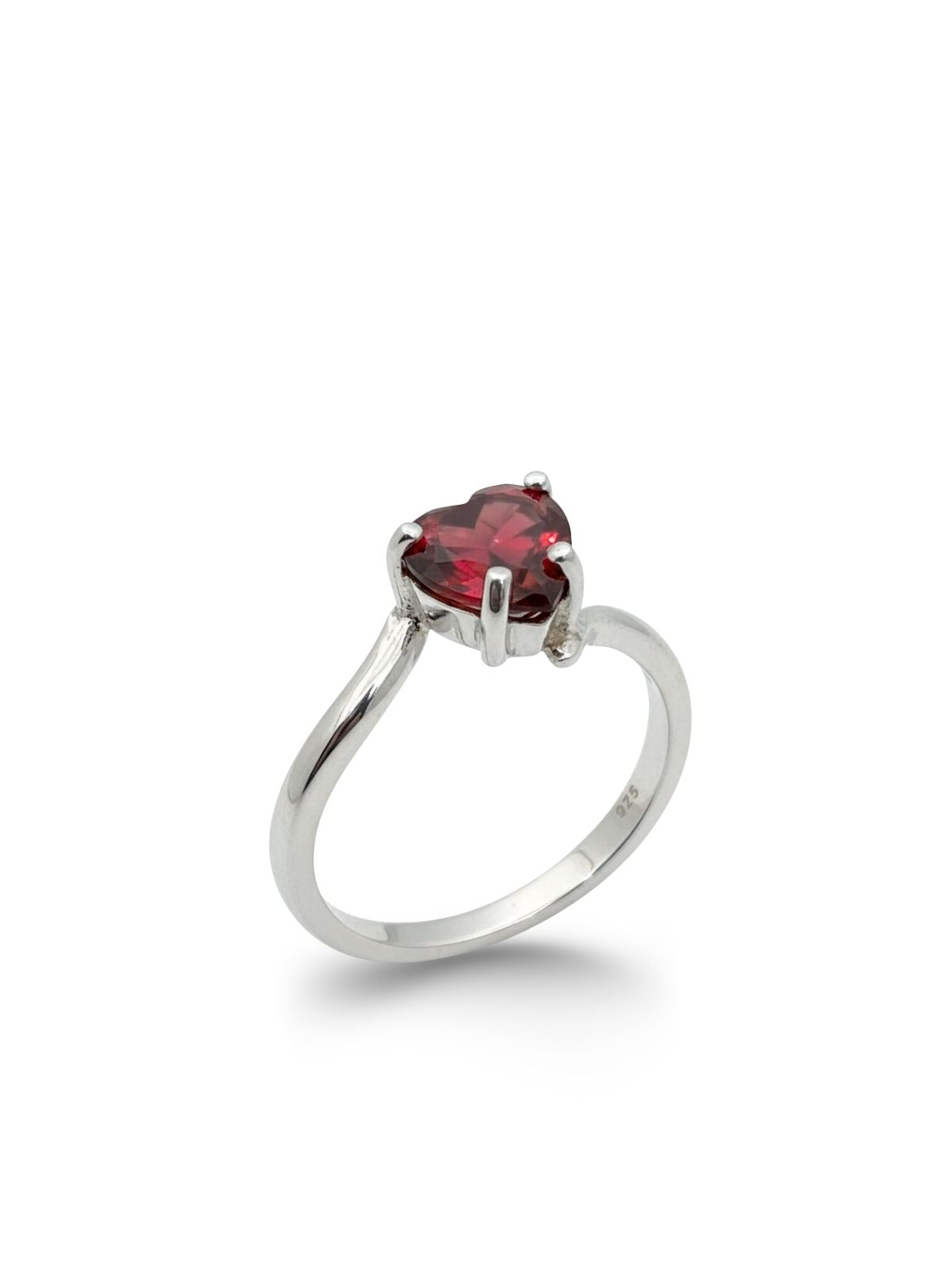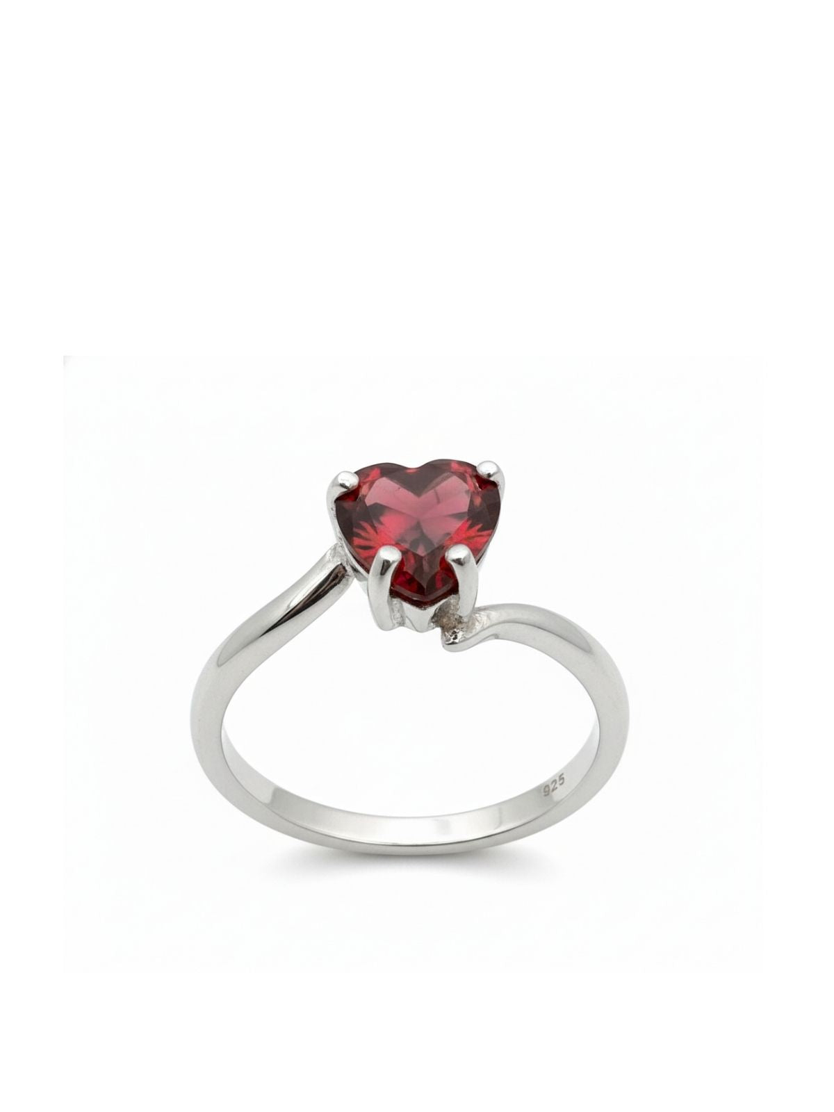 Kırmızı Zirkon Taşlı Kalp Tektaş Kadın Gümüş Yüzük