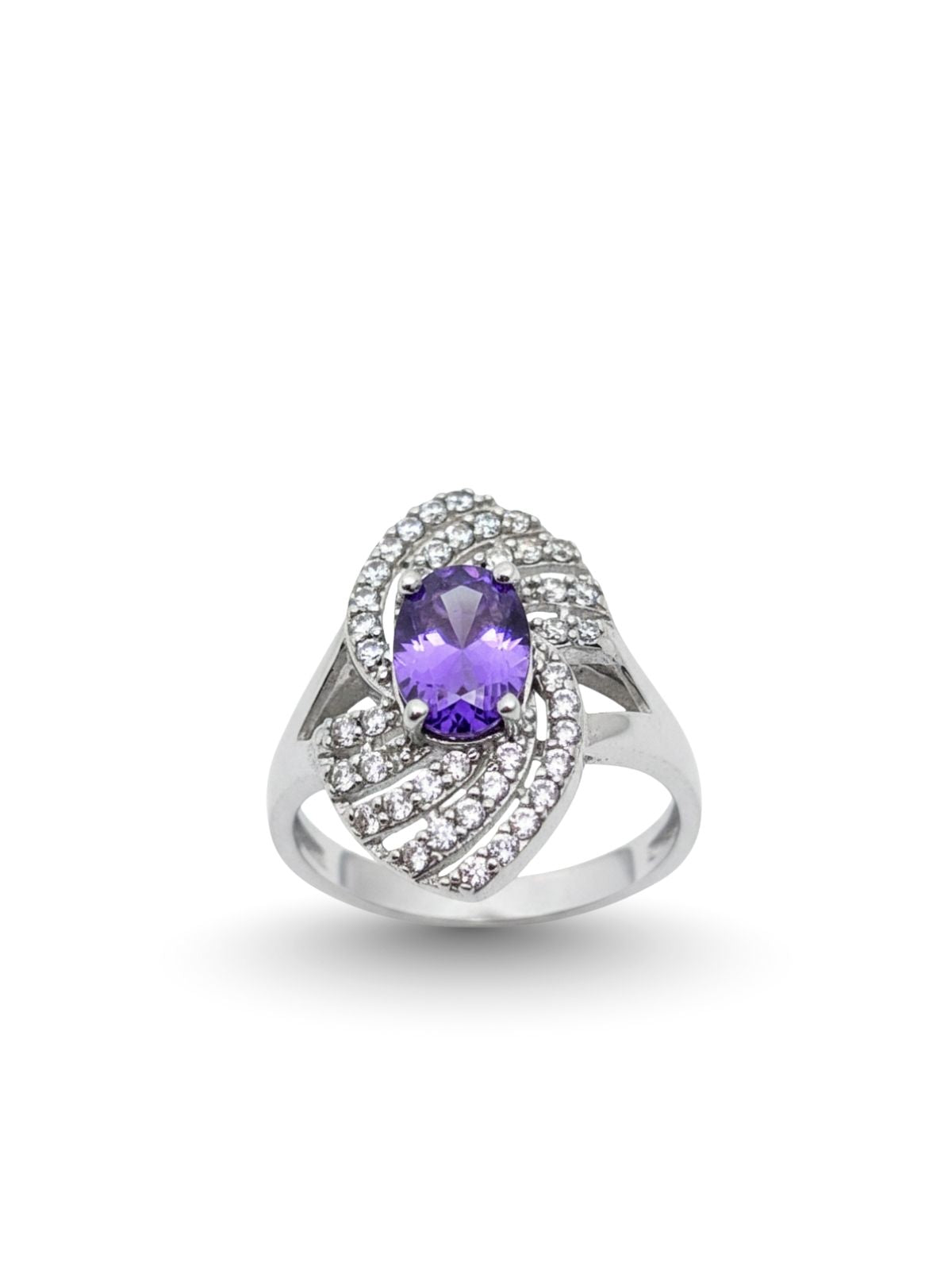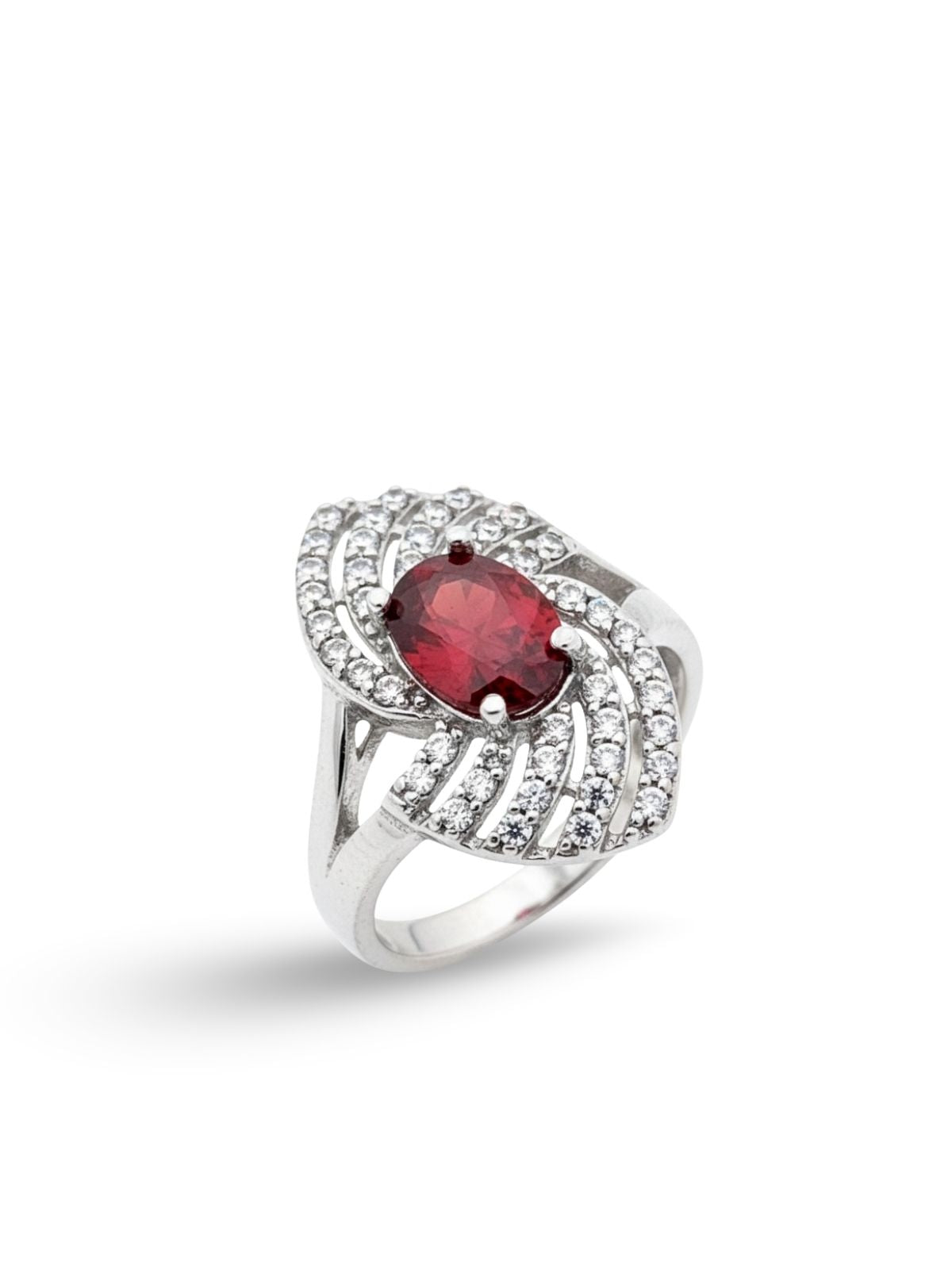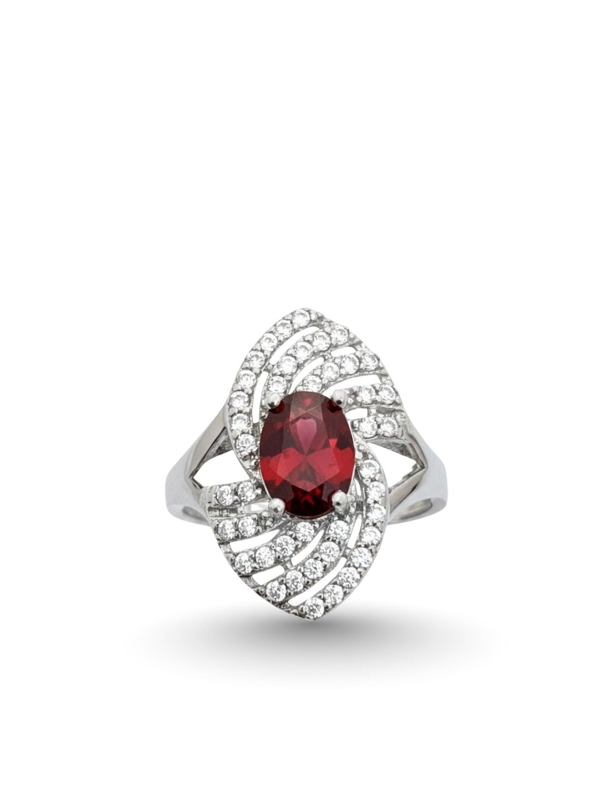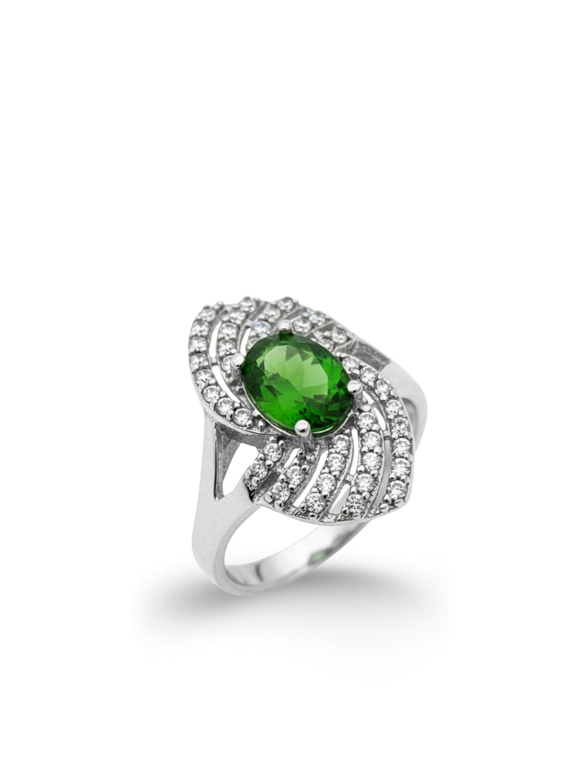 Oval Renkli Zirkon Taşlı Kadın Gümüş Yüzük