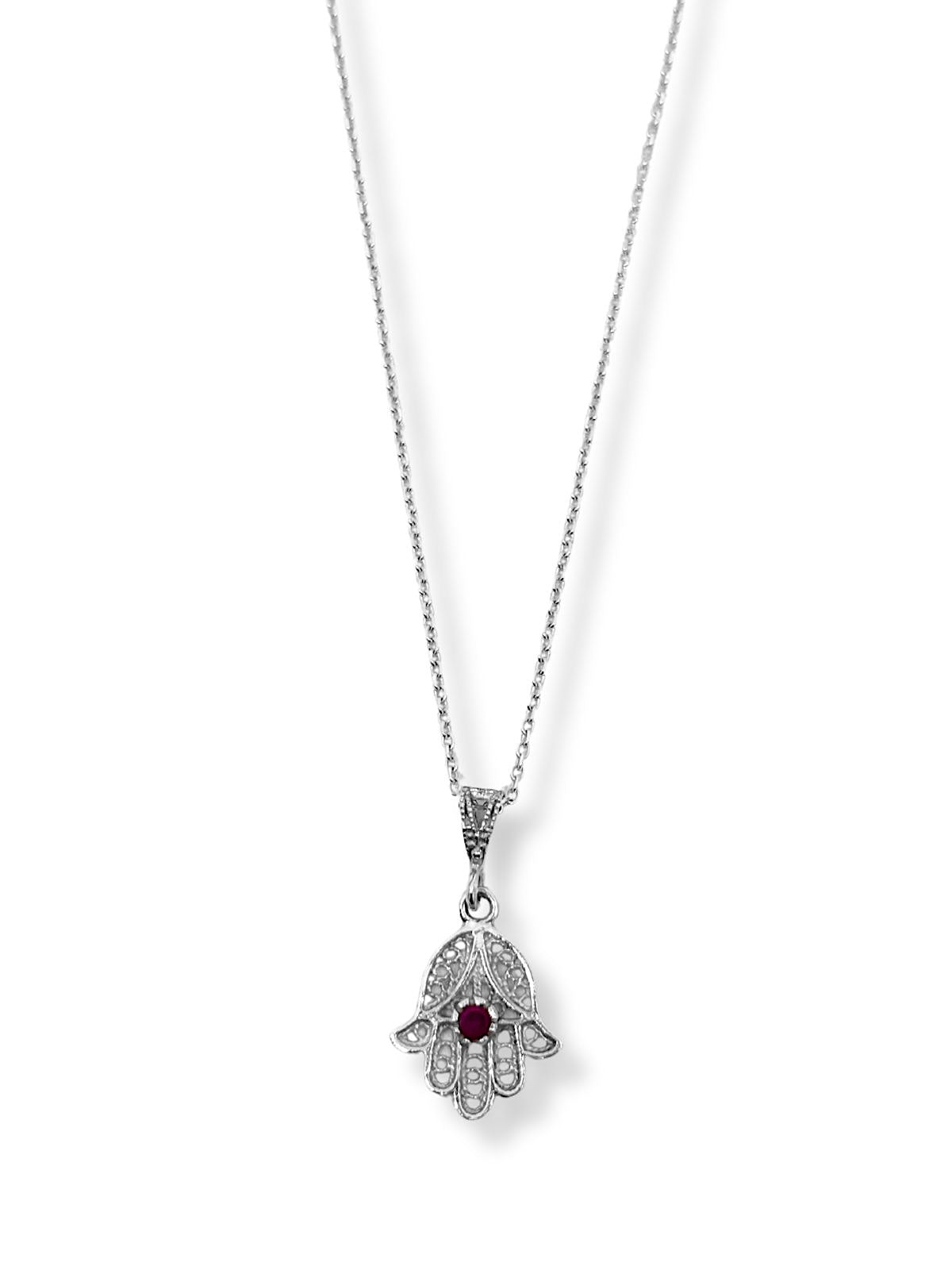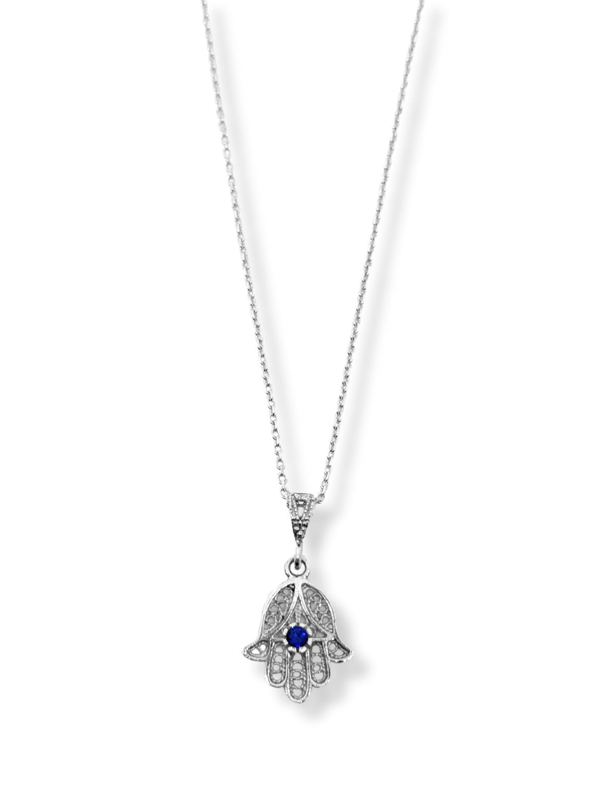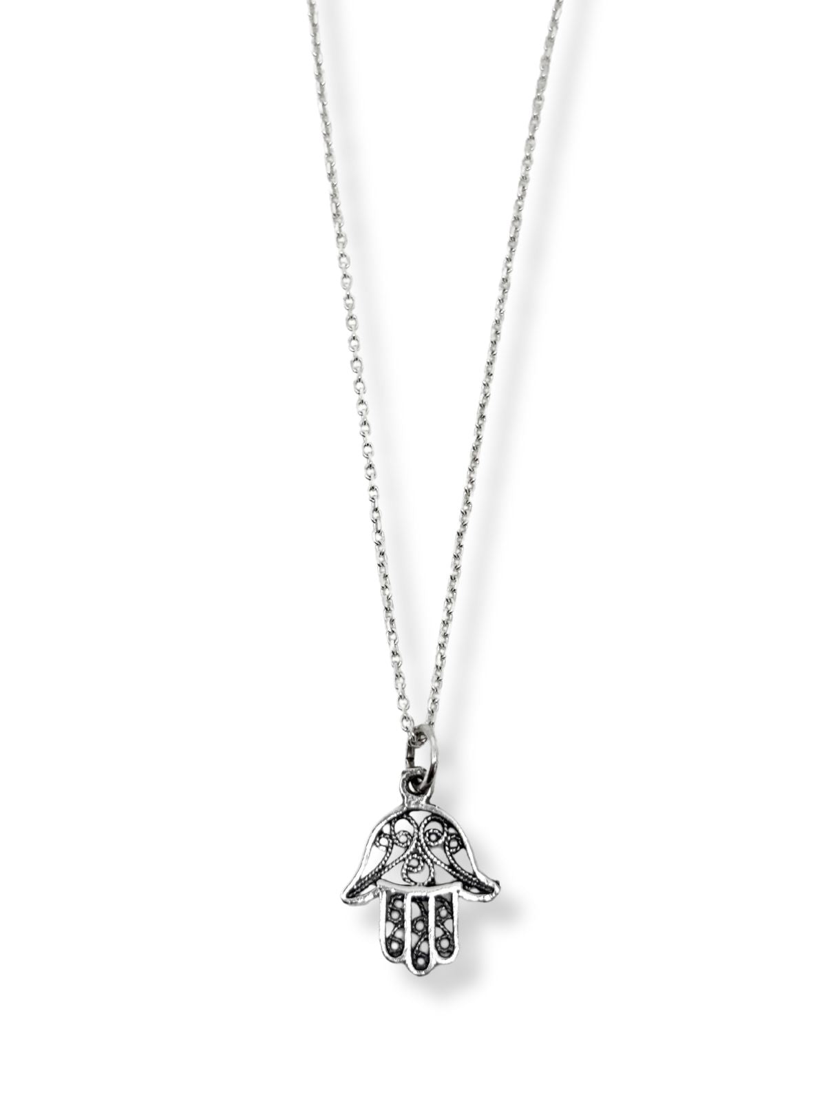Minimal Telkari Gümüş Fatma Ana Eli (Hamsa) Kolye 1.4x2.5cm