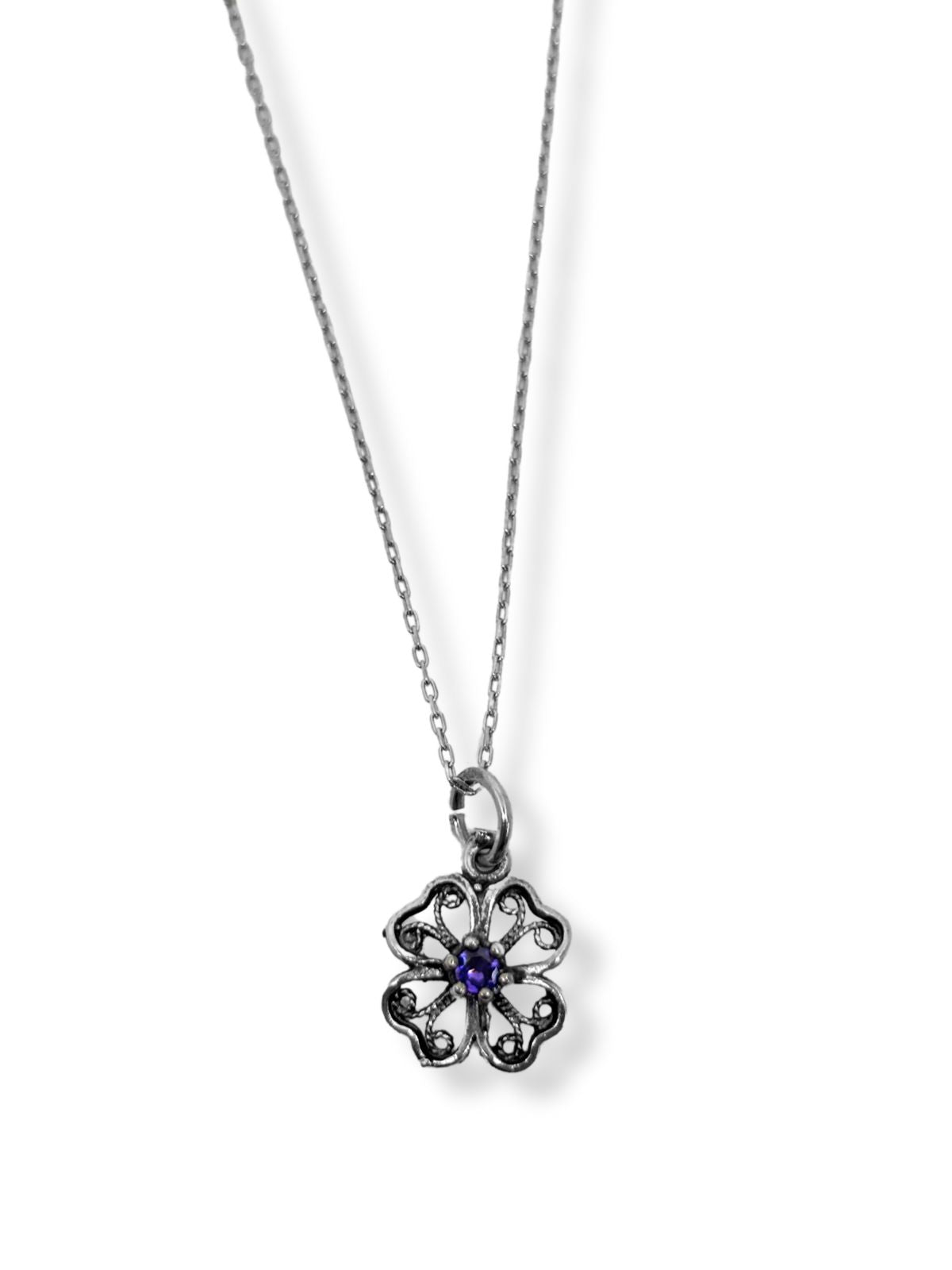 Telkari Gümüş Dört Yapraklı Yonca Kolye 1.3x2 CM