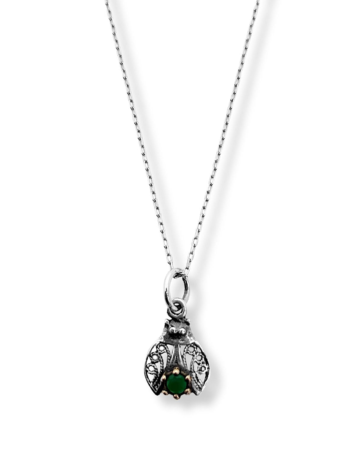 Telkari Gümüş Uğur Böceği Zümrüt Kolye 1x2 CM