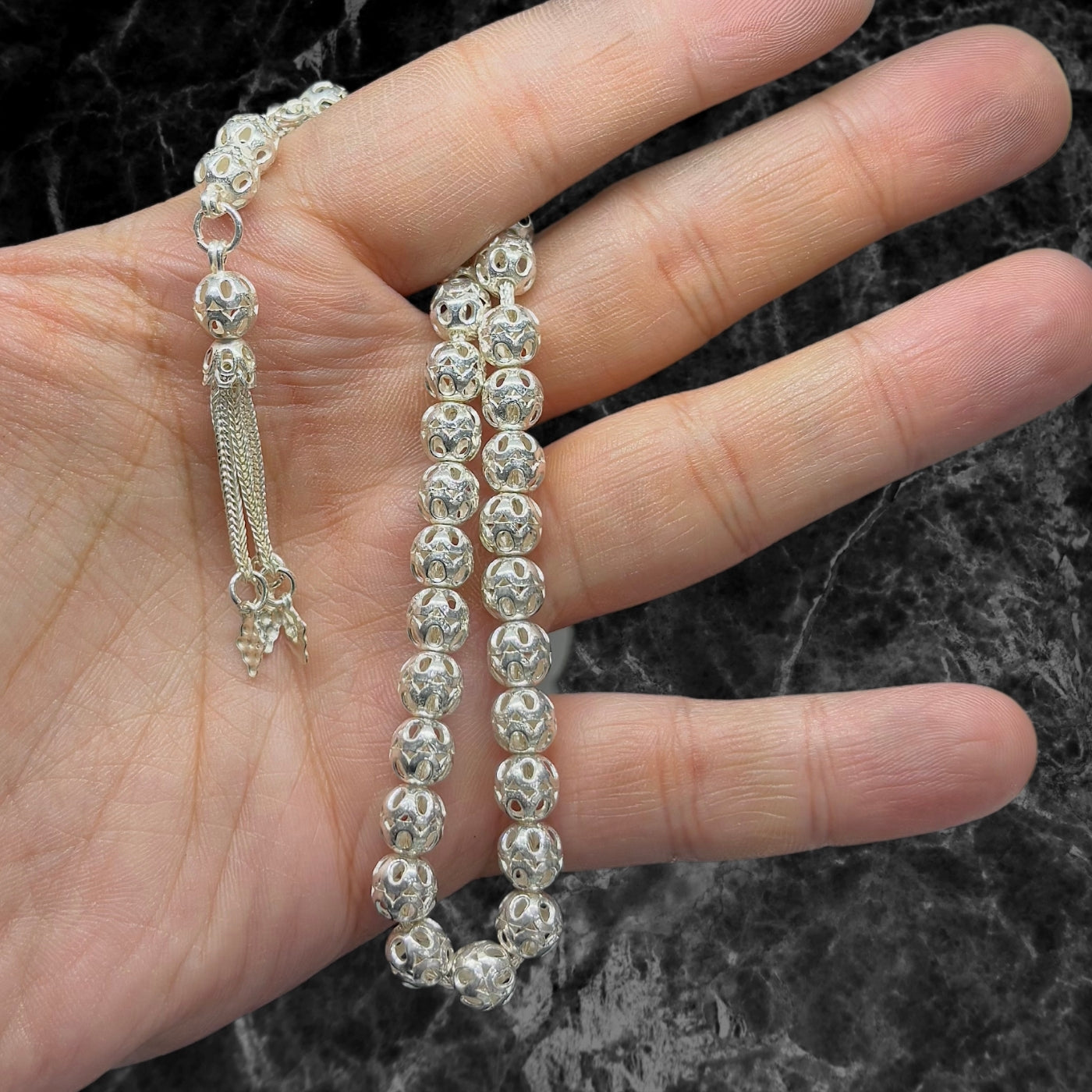 Openwork Shiny Silver Prayer Beads