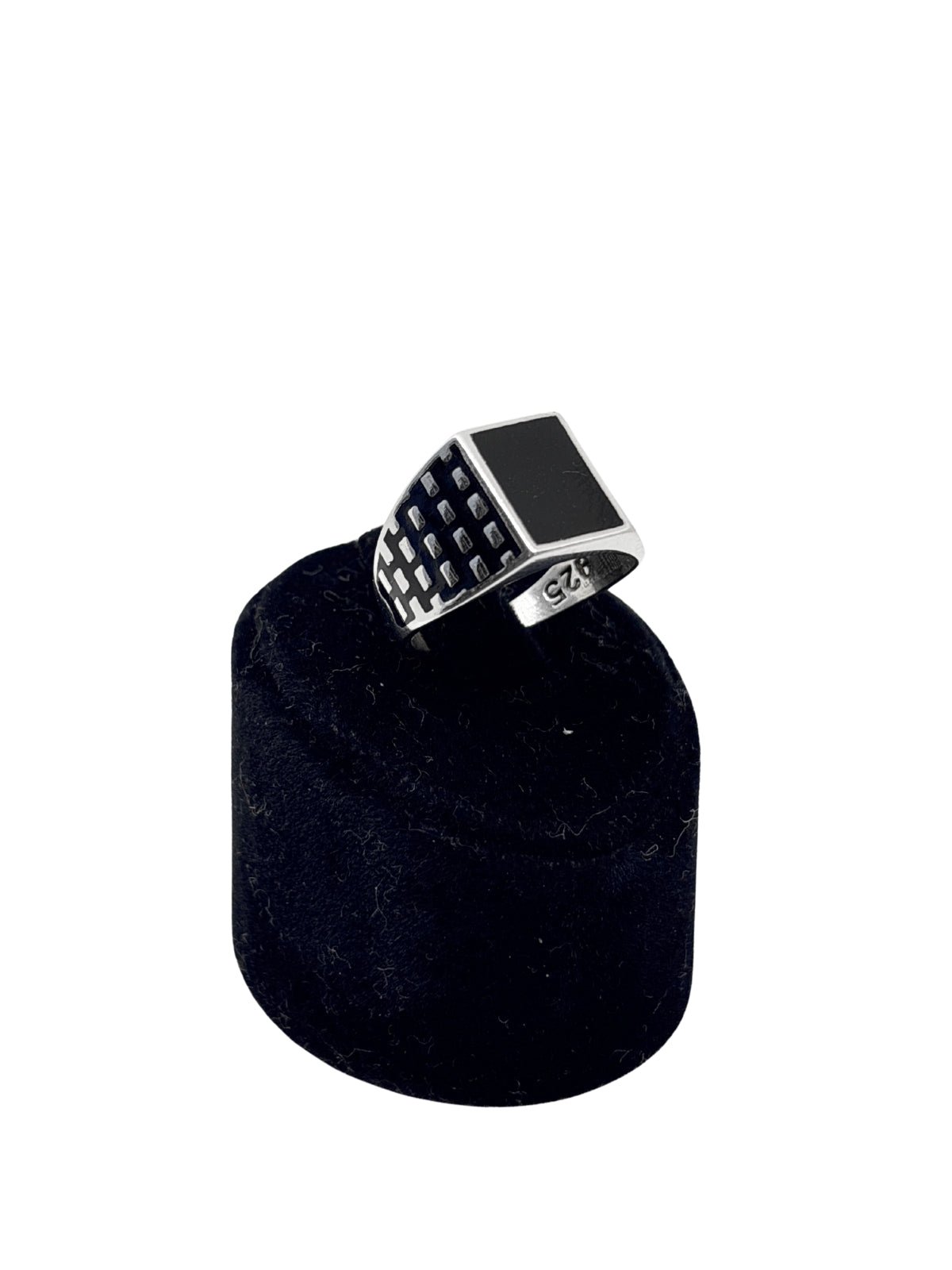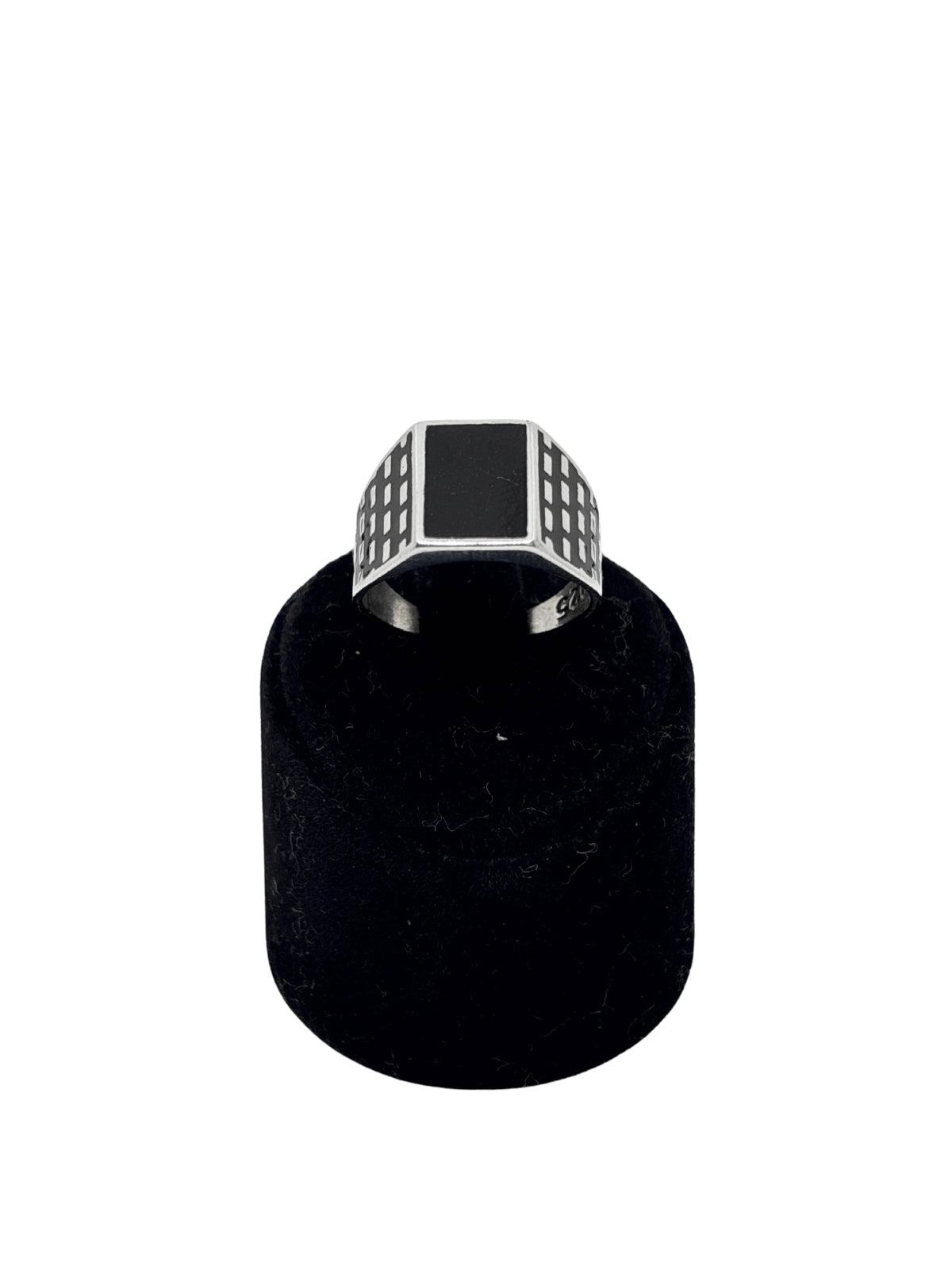Siyah Mineli Dikdörtgen Gümüş Erkek Yüzük