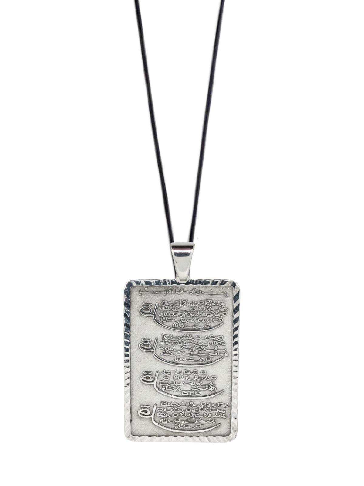 Dikdörtgen Lazer İşleme Gümüş 4 Kul Sureleri Yazılı Dua Kolye 5.5x3.2 cm [OYSY193]