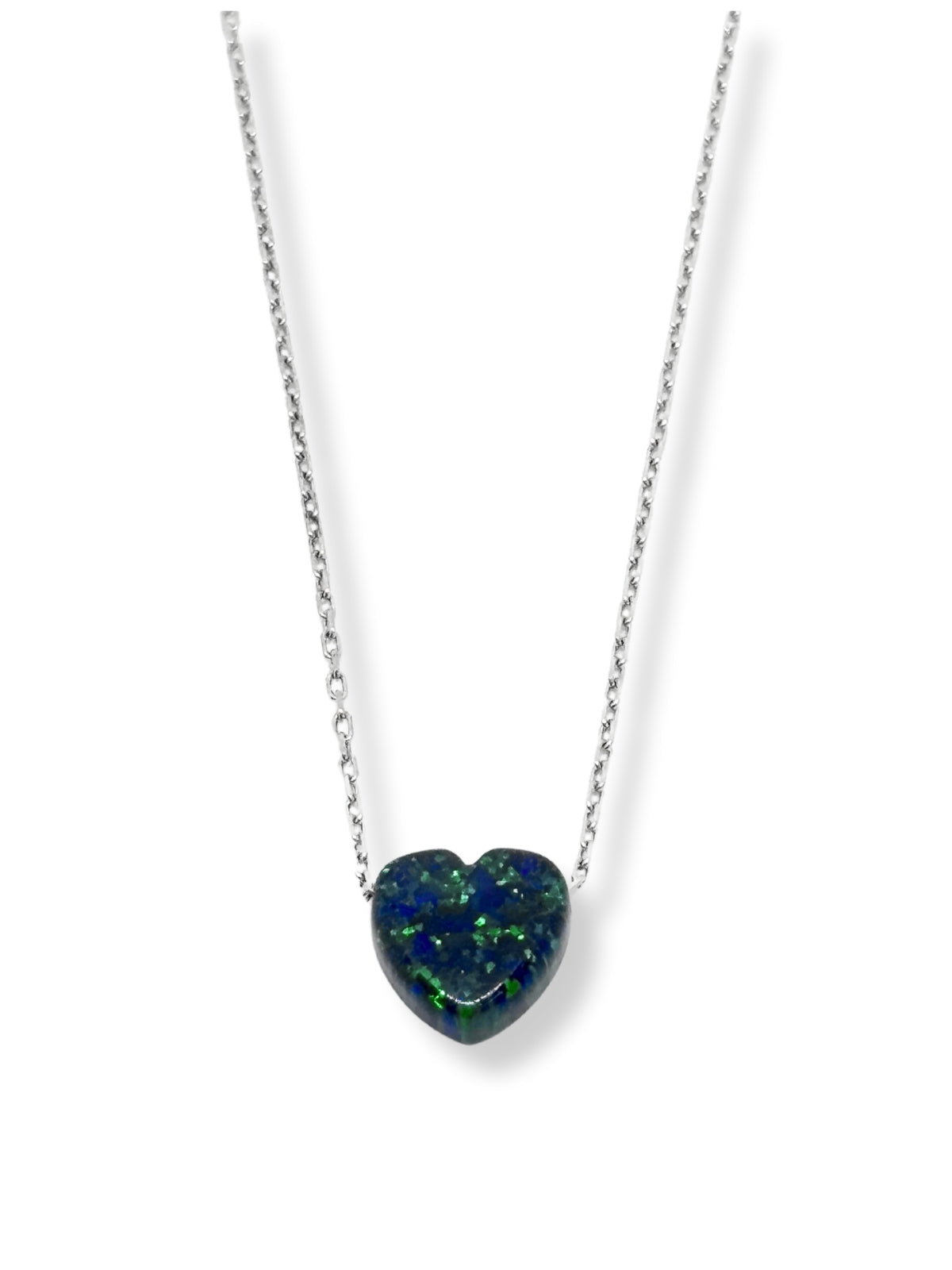 Mini Lacivert Opal Kalp Gümüş Kadın Kolye