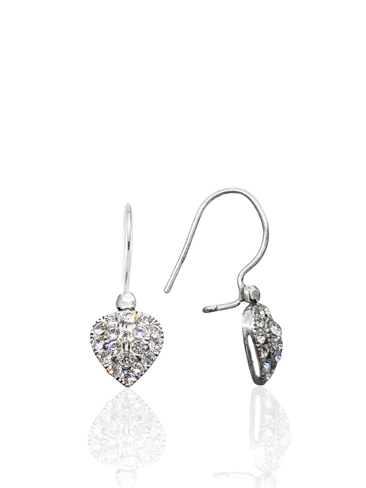 Zirkon Taş Bezeli Kalpli Gümüş Kadın Küpe 2.5x1 cm