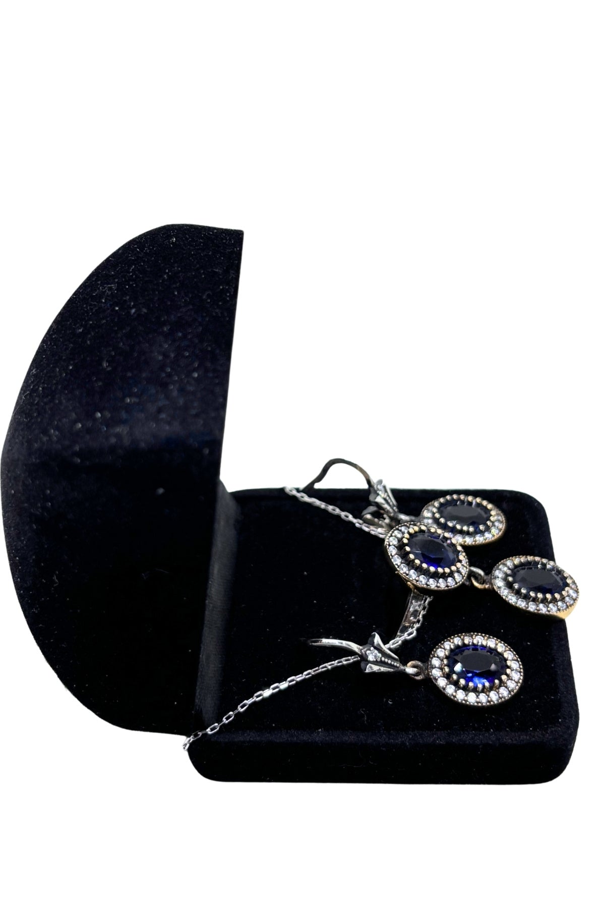 Beyaz Işıltılı Oval Safir Gümüş Set&Takım