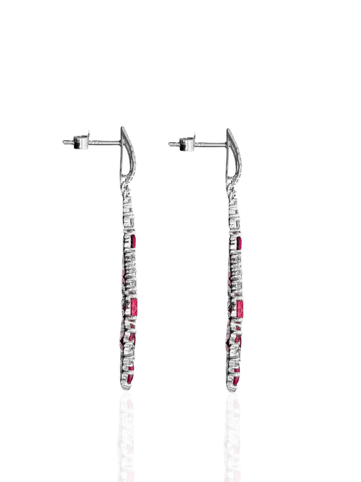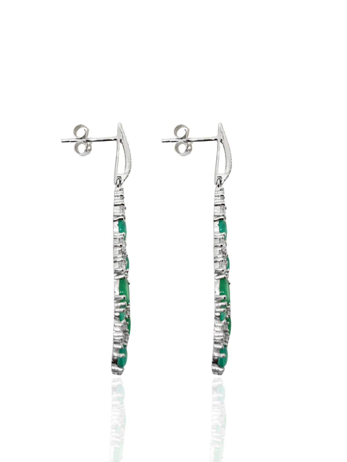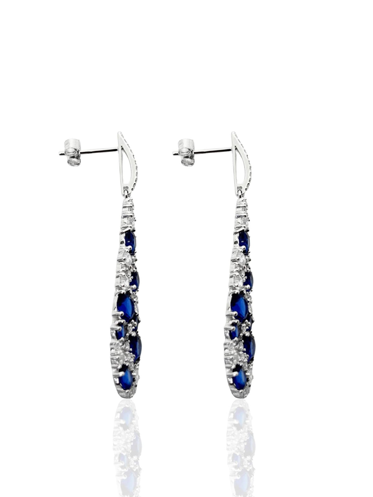 Beyaz Işıltılı Uzun Damla Form Safir&Zümrüt&Yakut Vidalı Gümüş Küpe 4.9x0.9cm