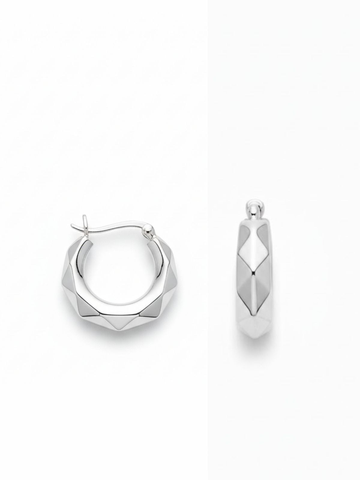 Çok Yüzeyli Cilalı Gümüş Kadın Halka Küpe 2x2 cm